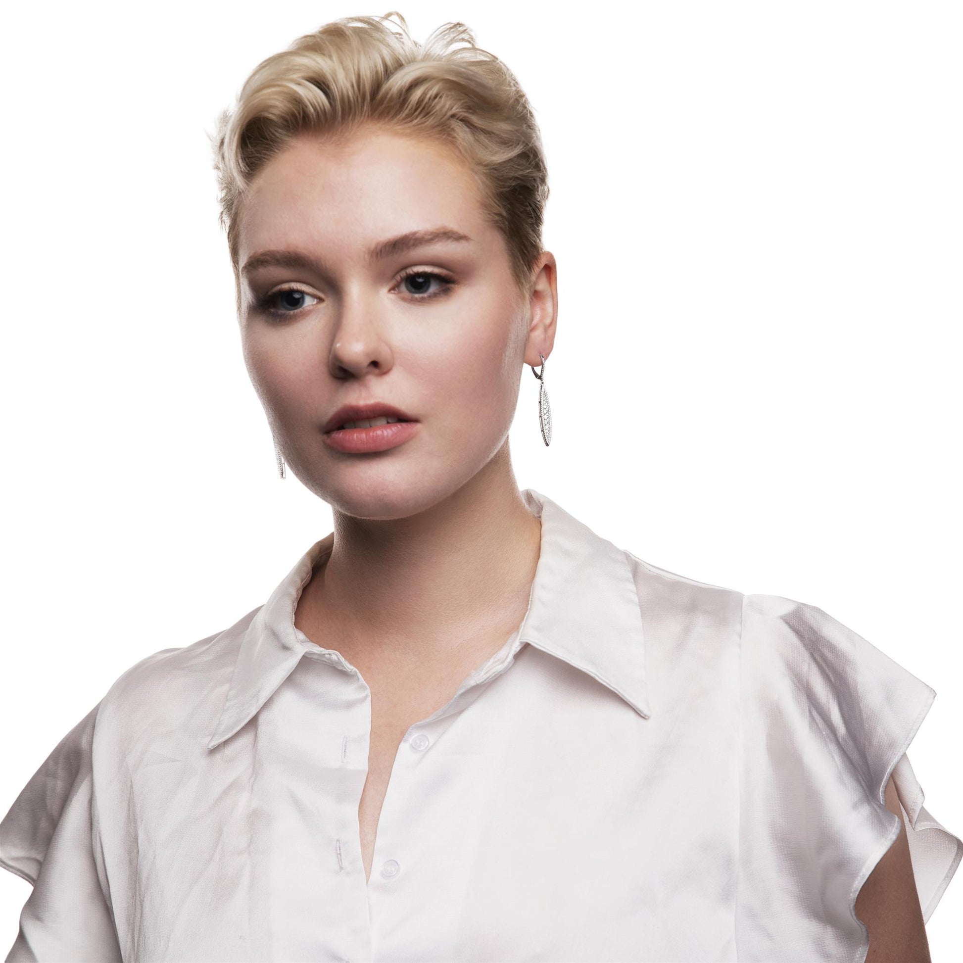 The Gemistry Judy Crowell Collection is renowned for its elegant and timeless designs, featuring a diverse range of unique gemstones set in high-quality materials. Each piece reflects Judy's classic and sophisticated style, offering versatile and affordable options suitable for both everyday wear and special occasions. Dazzle with this stunning Sterling Silver dangle earrings. They feature a unique marquise shaped dangle encrusted with sparkling CZ stones. They are lightweight and have easy to use lever back closures (for pierced ears only).