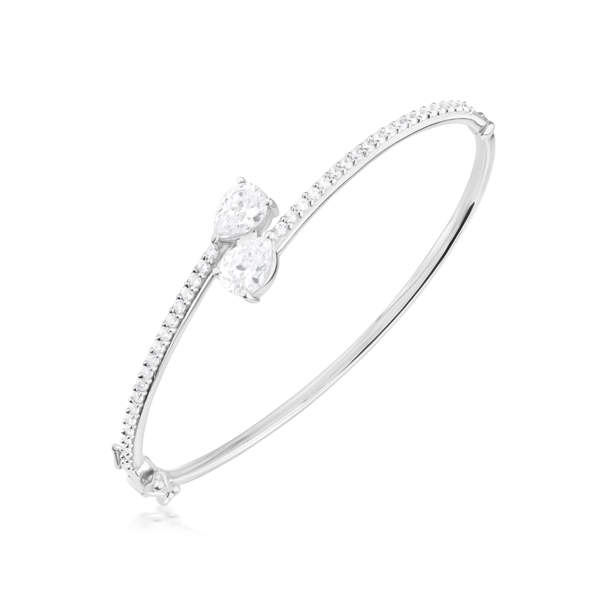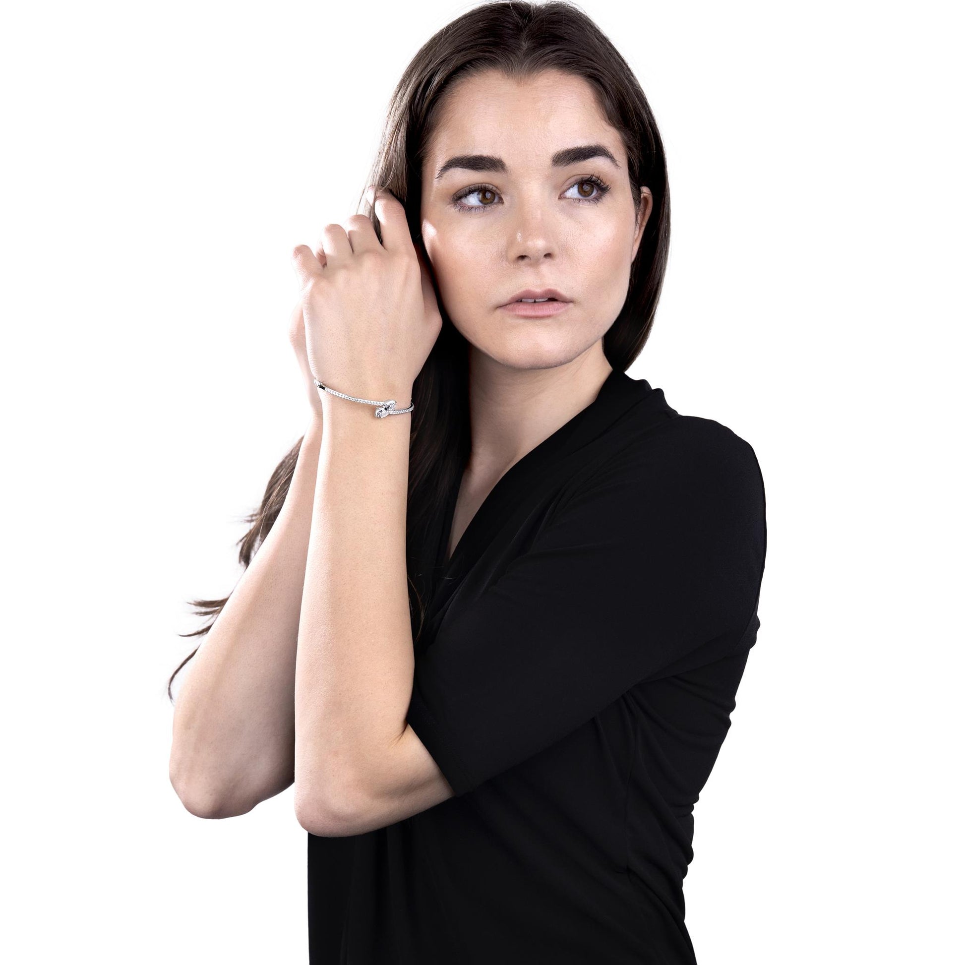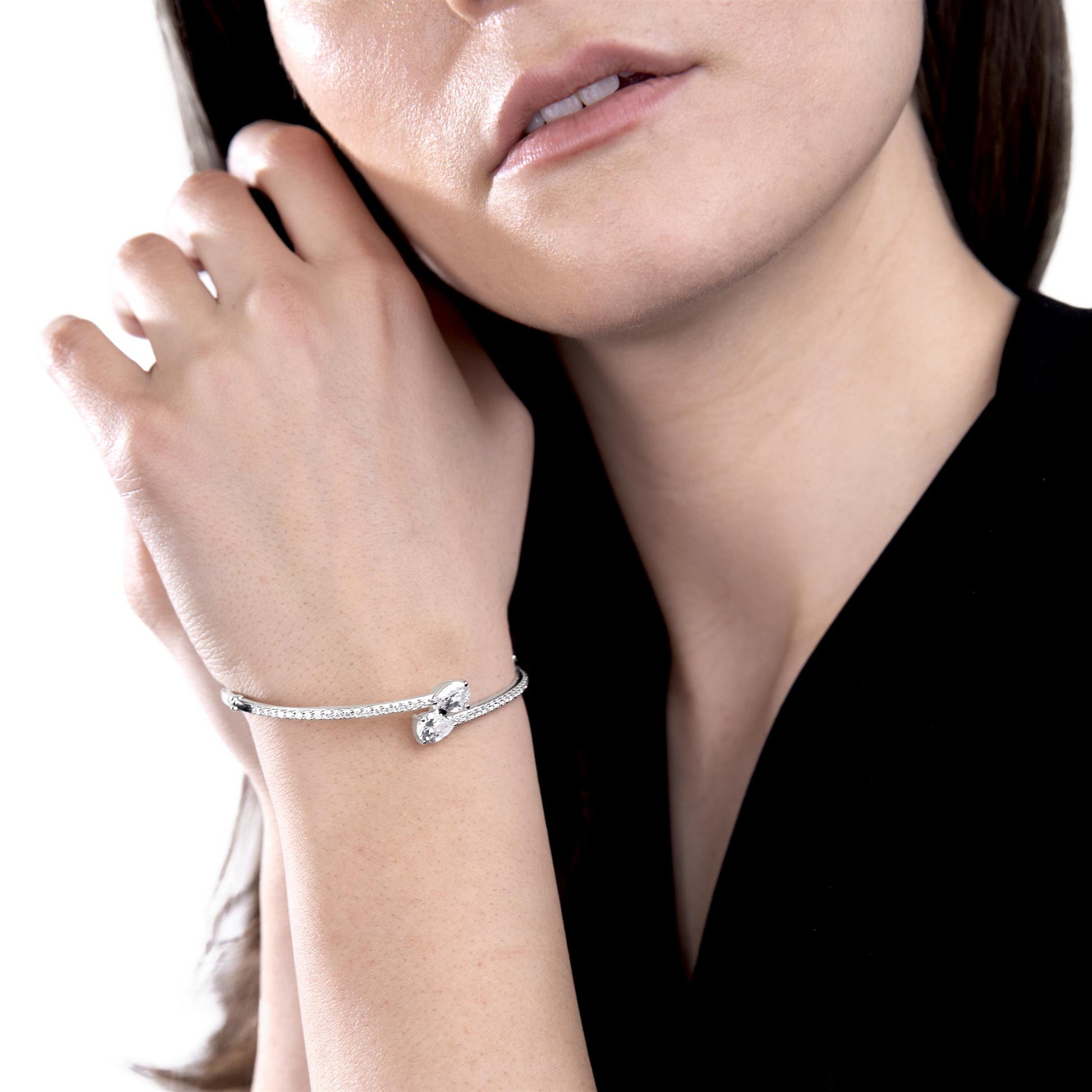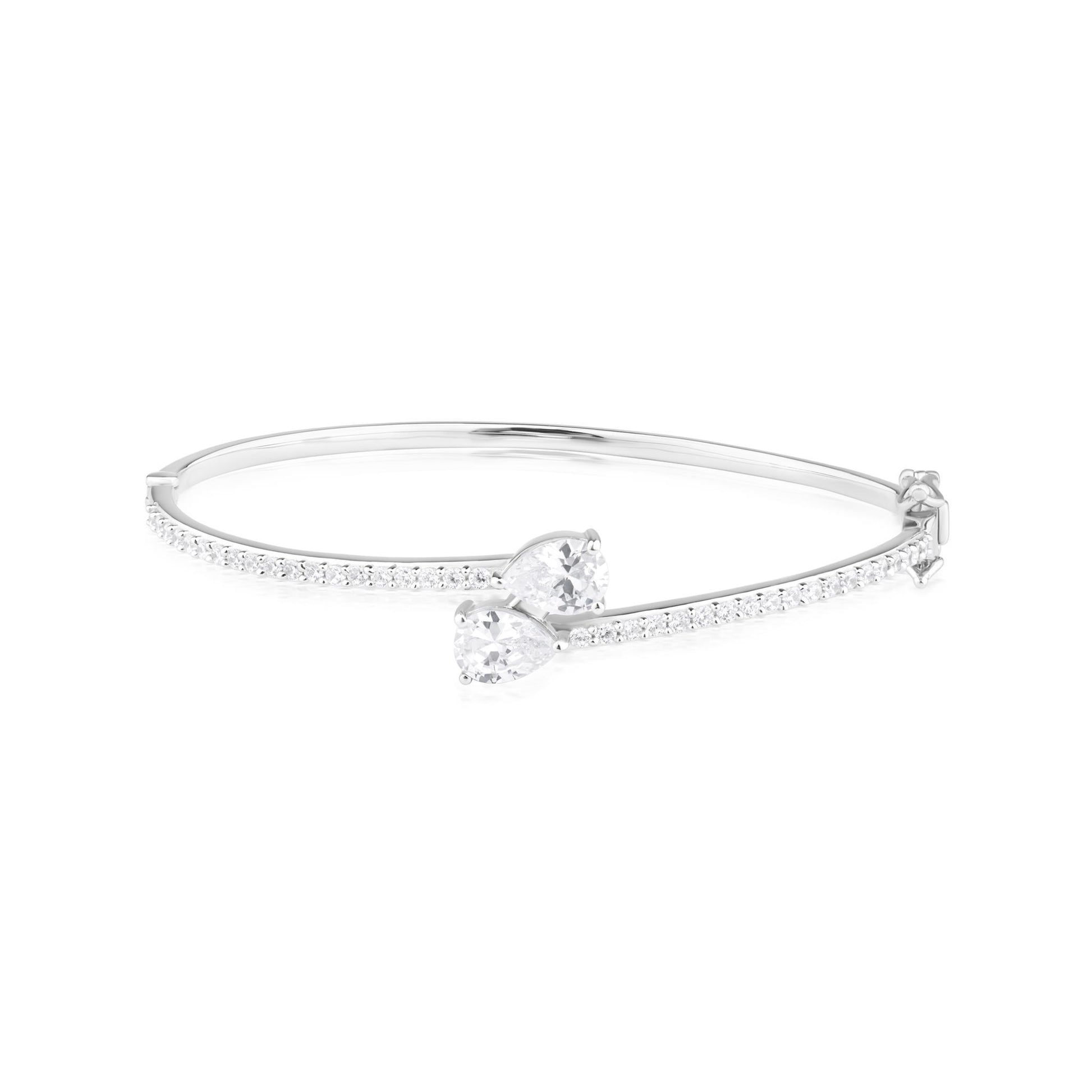 The Gemistry Judy Crowell Collection is renowned for its elegant and timeless designs, featuring a diverse range of unique gemstones set in high-quality materials. Each piece reflects Judy's classic and sophisticated style, offering versatile and affordable options suitable for both everyday wear and special occasions. Dazzle with this stunning Sterling Silver cuff bracelet with Cubic Zirconia stones. This bypass style bracelet features sparkling Cubic Zirconia stones wrapped in a band of genuine Sterling Silver (51mm circumference). Cubic Zirconia is known for its brilliant sparkle, clarity, and hardness, offering a flawless, luxurious appearance.