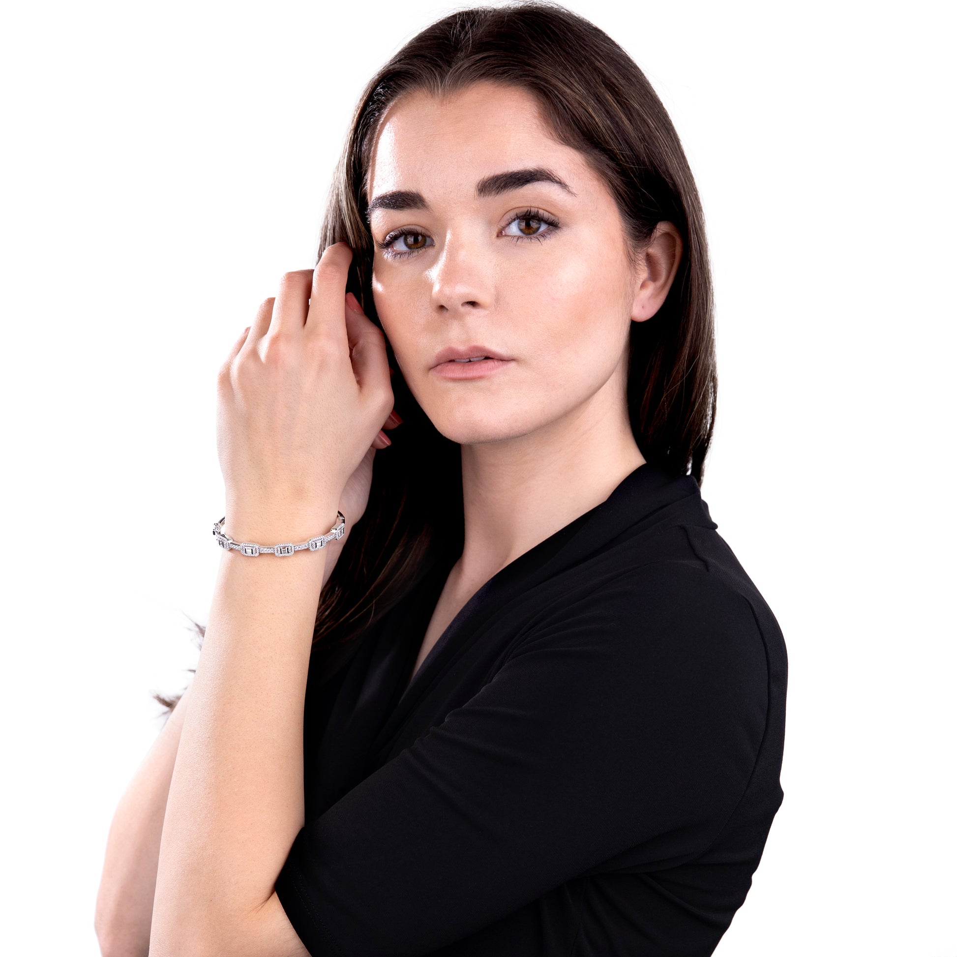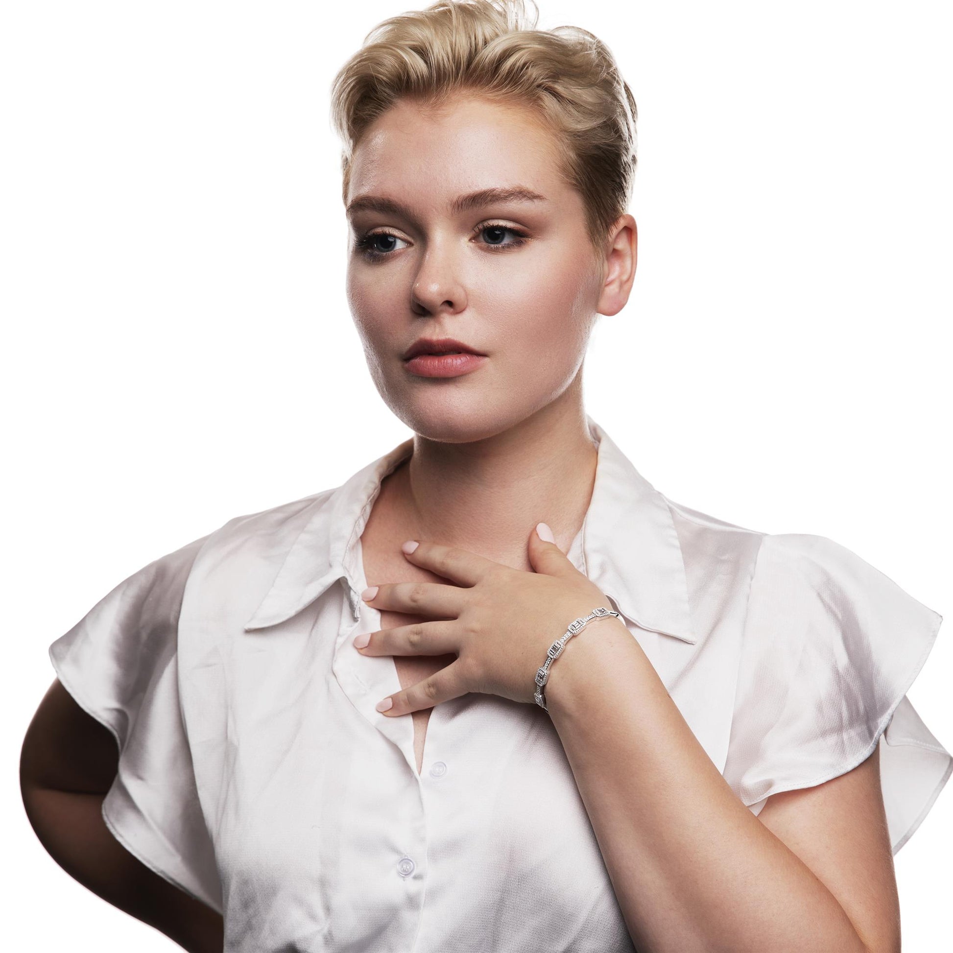 Judy Crowell Jewelry Sterling Silver Rectangle Station Cubic Zirconia Bangle Bracelet