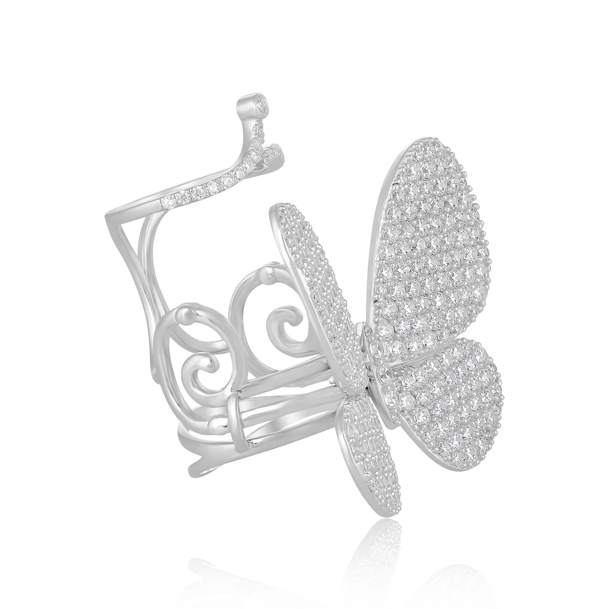 The Gemistry Judy Crowell Collection is renowned for its elegant and timeless designs, featuring a diverse range of unique gemstones set in high-quality materials. Each piece reflects Judy's classic and sophisticated style, offering versatile and affordable options suitable for both everyday wear and special occasions. Butterfly rings are a popular trend in women’s fashion. This eye-catching statement ring features a butterfly design with Cubic Zirconia-encrusted wings and a Sterling Silver band. The unique design allows the wings to flutter as you move your finger due to the extra top ring that sits above your knuckle. This piece is an absolute conversation starter! What makes these Cubic Zirconia embellishments particularly enchanting are their radiant fire - their ability to refract light into a dazzling spectrum of colors, rivaling that of Diamonds. Cubic Zirconia offers an affordable luxury without compromising on beauty.