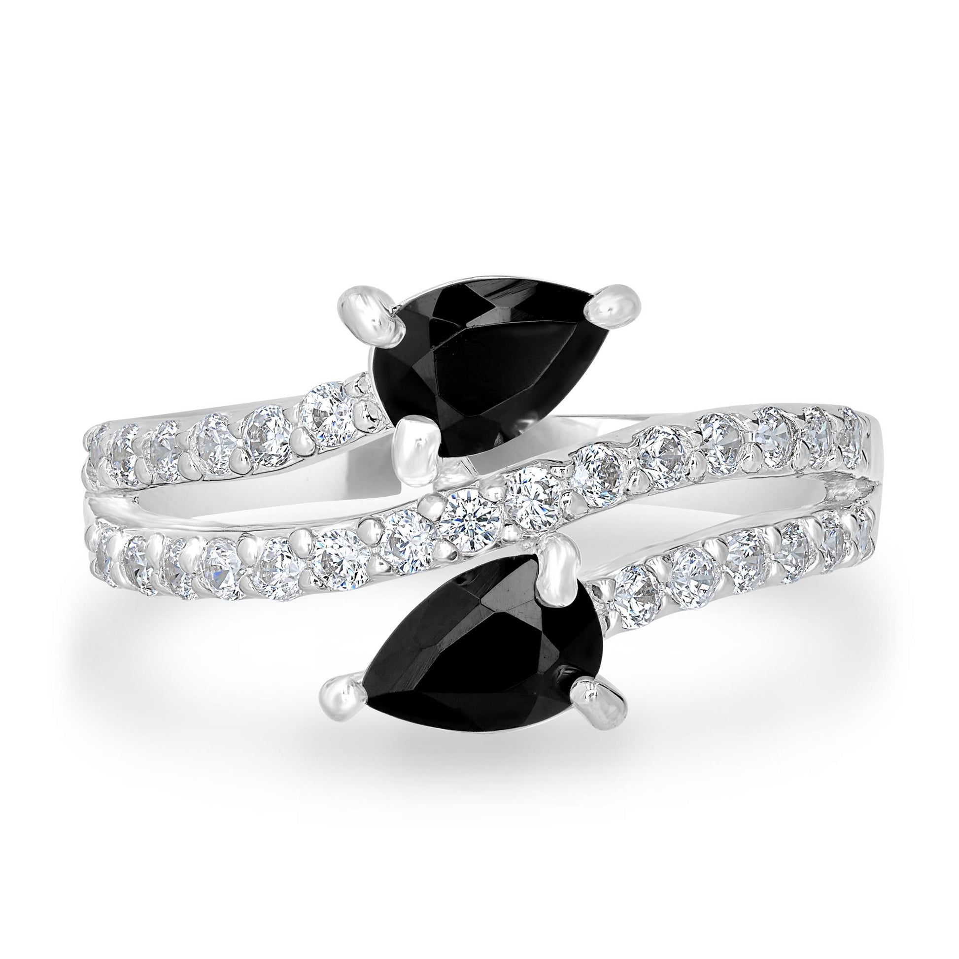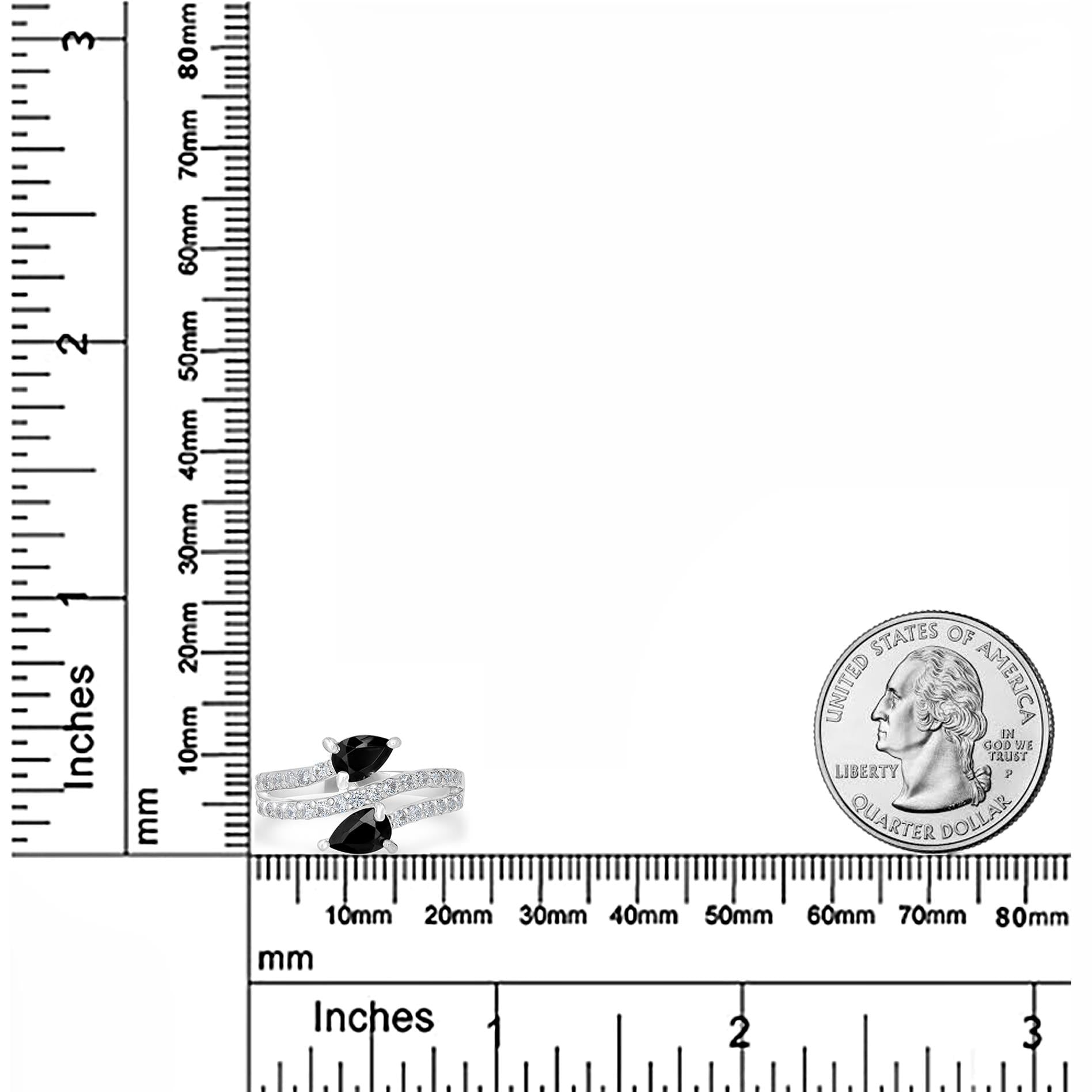 Introducing the Gemistry Birthstone Collection: stylish jewelry featuring your birth month’s unique gemstone. Celebrate your individuality with these beautiful, personal pieces—perfect for gifts or treating yourself! Handcrafted from .925 Sterling Silver, this stunner features two 6X4 mm genuine pear cut Black Onyx stones, prong set, in a Cubic Zirconia-encrusted bypass band. Rhodium plating helps to reduce tarnishing. Black Onyx is the alternative birthstone of the month of December. It is believed to promote emotional strength, protection, and grounding.