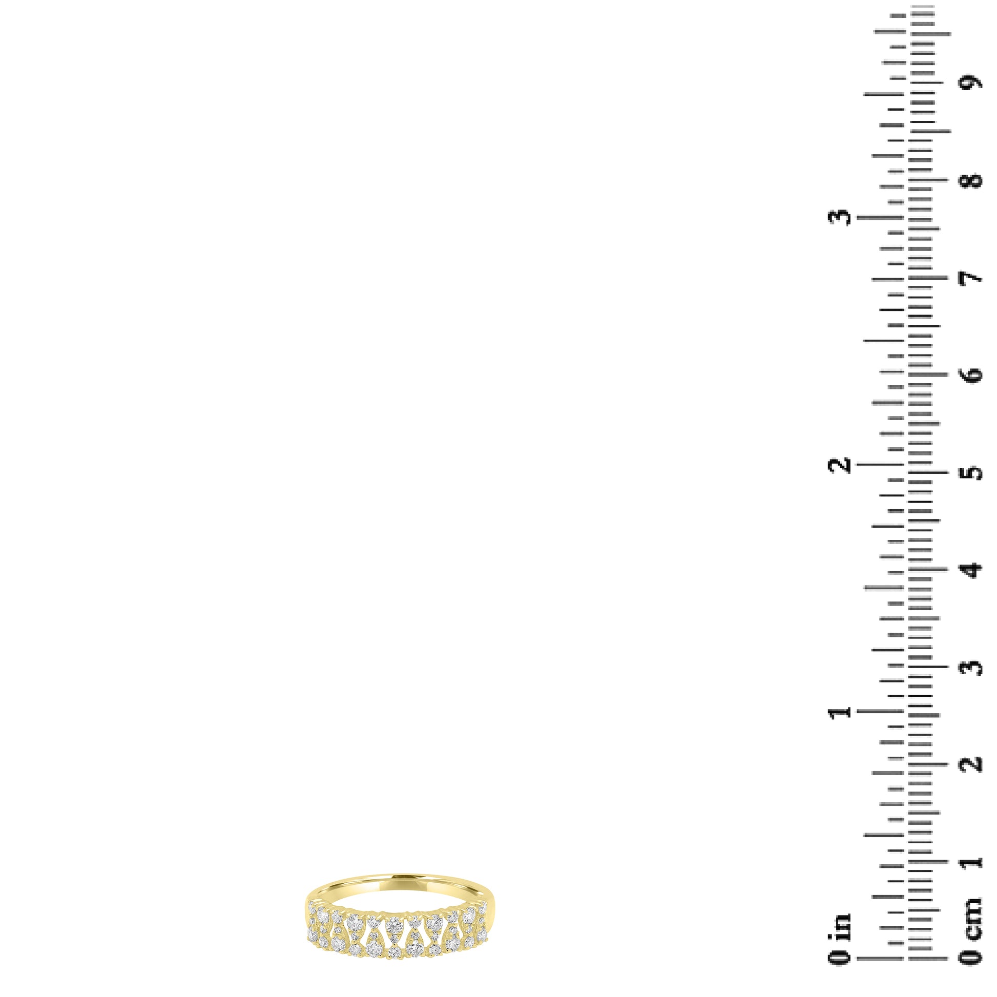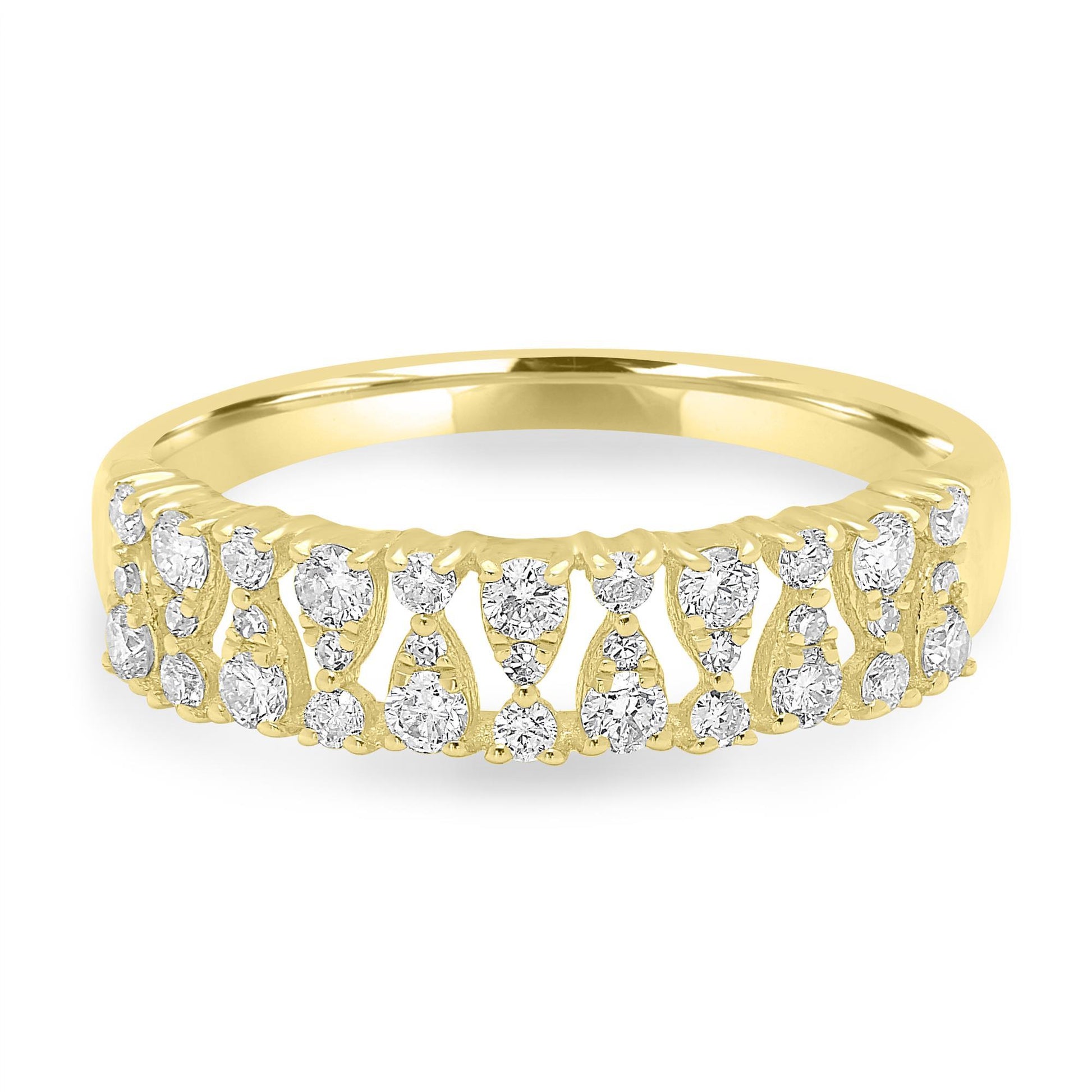 The Gemistry Dazzling Diamonds Collection showcases an array of stunning jewelry, and each piece is adorned with Diamonds that capture and reflect light, exuding unparalleled elegance and sparkle. Dress up your jewelry wardrobe with this elegant band ring. This uniquely designed ring is sure to impress and accentuate your whole look. This ring is crafted in 14K Gold, this band ring is a must-have! It features a total of .43 carats of round Diamonds interspersed in a unique alternating openwork design. Each Diamond is meticulously selected for its clarity, hue, and saturation, ensuring your ring is truly one-of-a-kind.