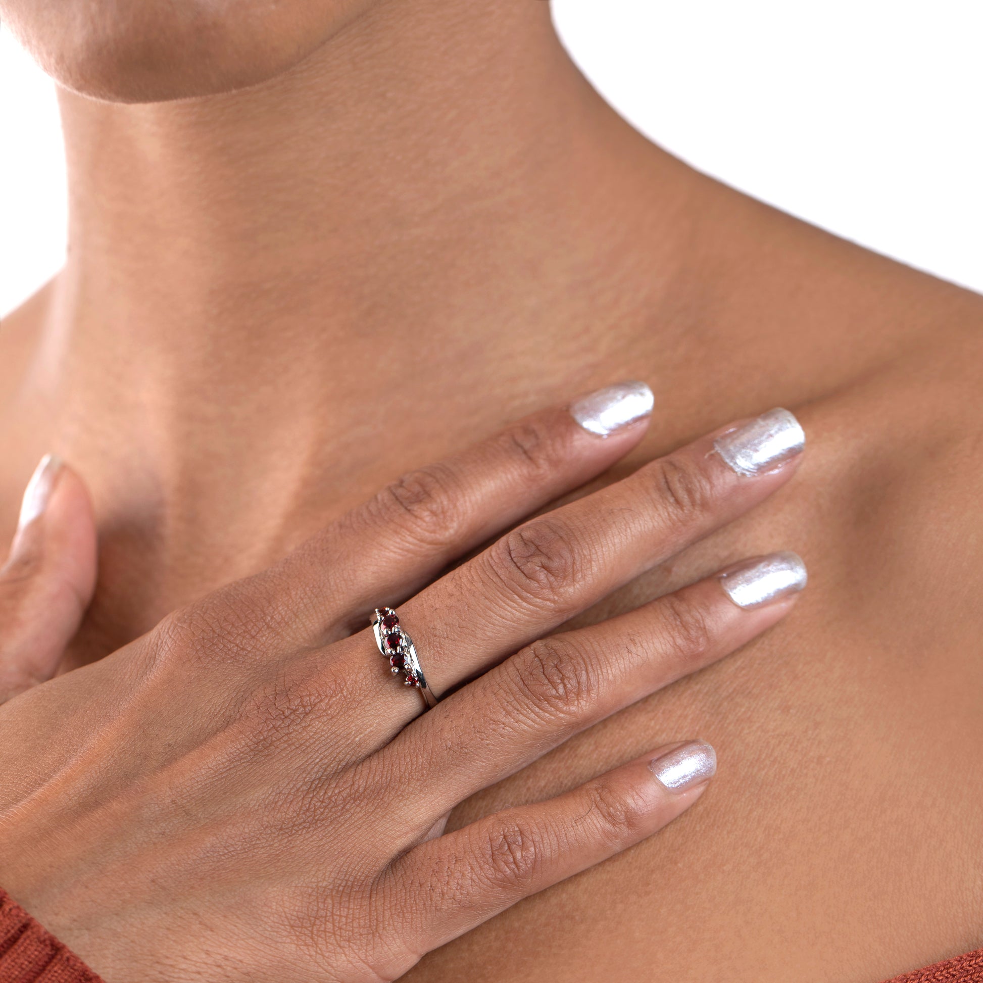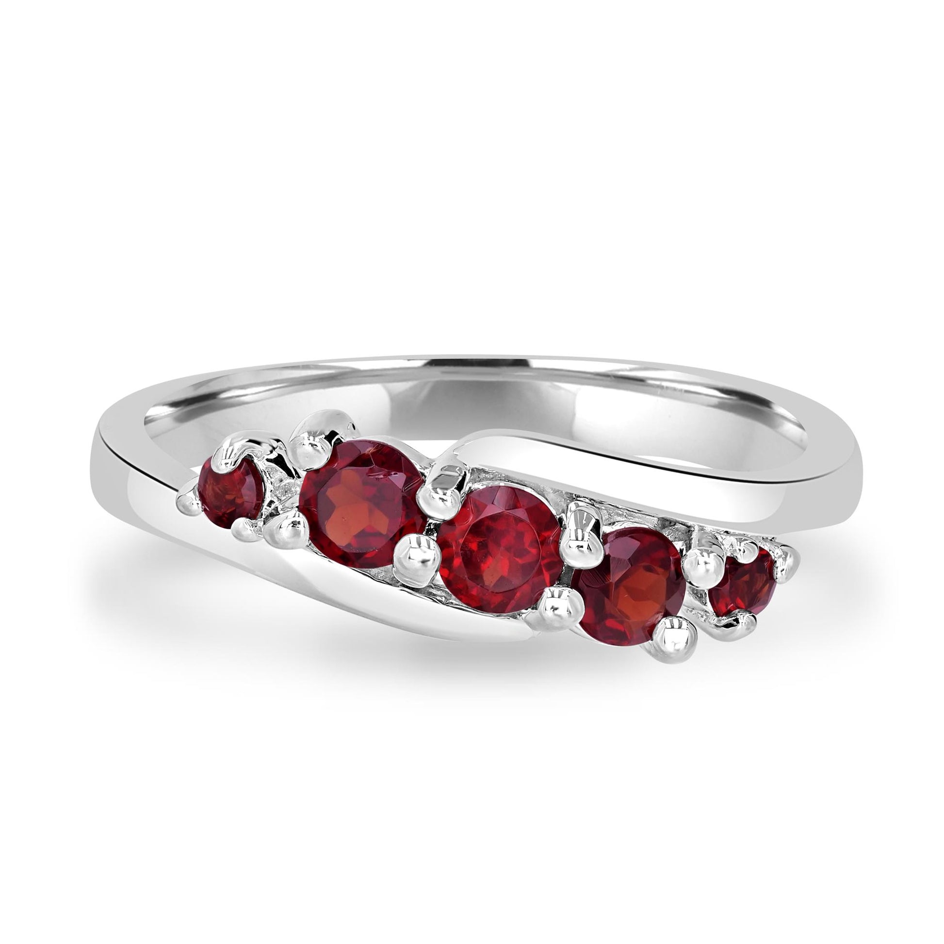 Introducing the Gemistry Birthstone Collection: stylish jewelry featuring your birth month’s unique gemstone. Celebrate your individuality with these beautiful, personal pieces—perfect for gifts or treating yourself! The Gemistry Angela 5-Stone Wave Ring is designed with 5 genuine round Garnet gemstones set in a wave designed band crafted from Rhodium plated Sterling Silver, which helps to reduce tarnishing. Three 3.25mm gemstones adorn the center of the ring, flanked by two 2.5mm genuine round cut gemstones. Garnet is the birthstone of January and is associated with protection, passion, and strength.