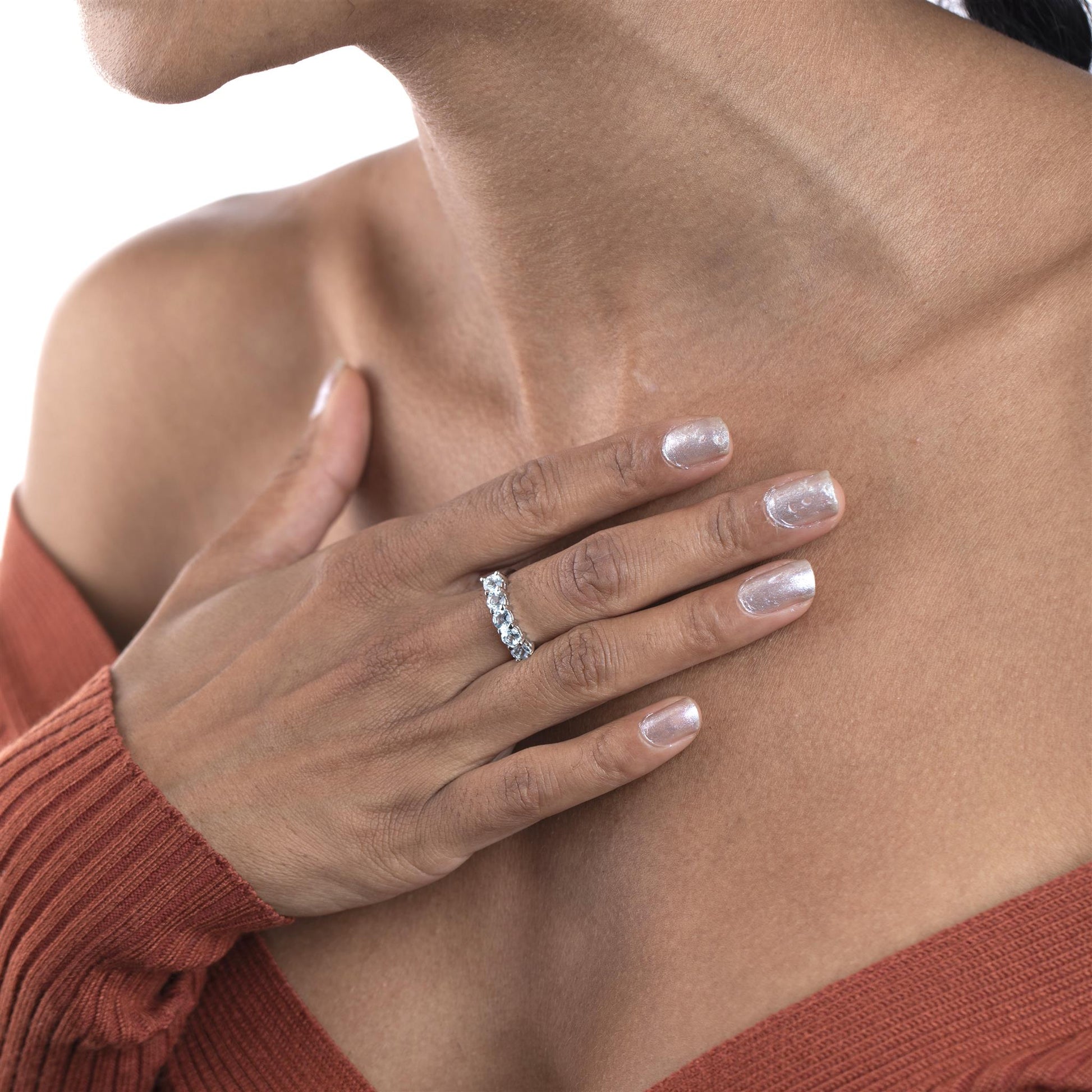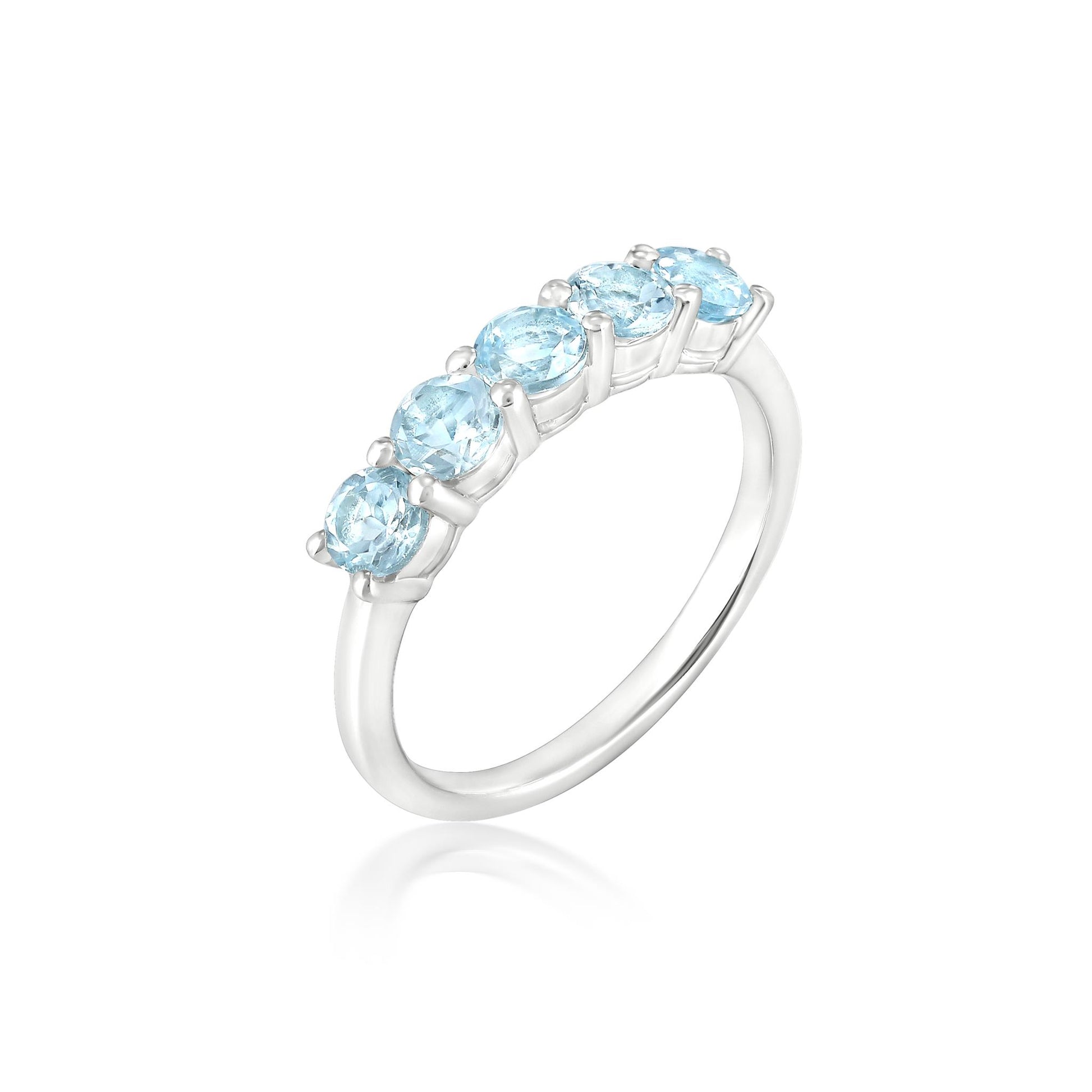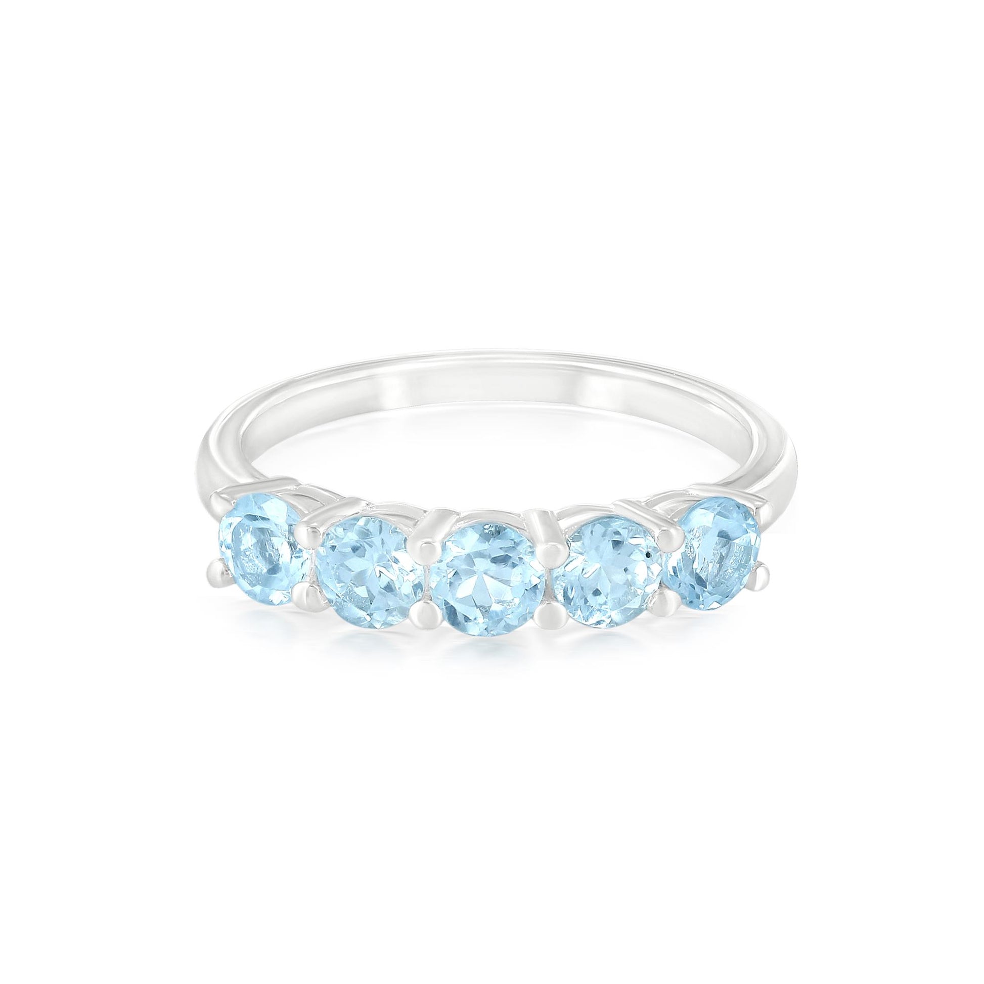 Introducing the Gemistry Birthstone Collection: stylish jewelry featuring your birth month’s unique gemstone. Celebrate your individuality with these beautiful, personal pieces—perfect for gifts or treating yourself! Designed with 5 genuine round Blue Topaz gemstones, this Sterling Silver ring adds a touch of elegance to any outfit. Rhodium plating helps to reduce tarnishing. Blue Topaz is the birthstone of the month of December. Blue Topaz is believed to promote emotional balance, enhance creative expression, and help its wearer develop a deeper understanding and connection with others. It is also thought to bring peace and protection to those born in December.