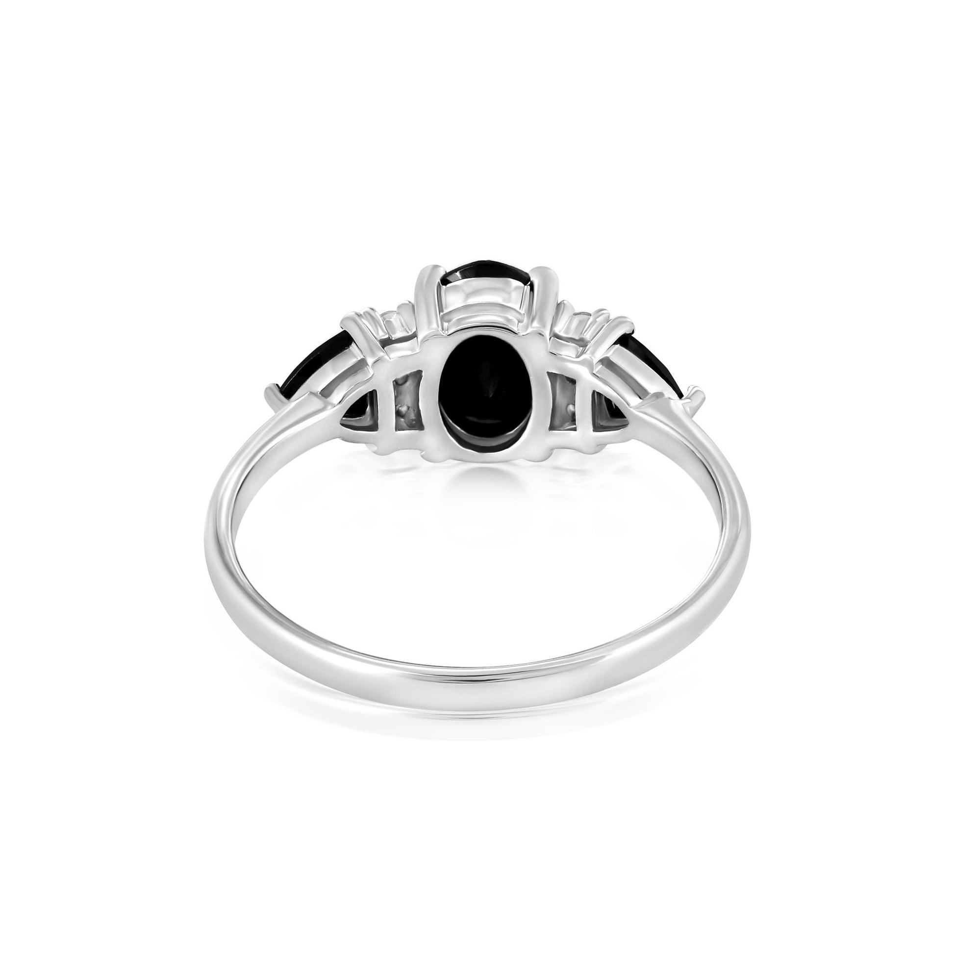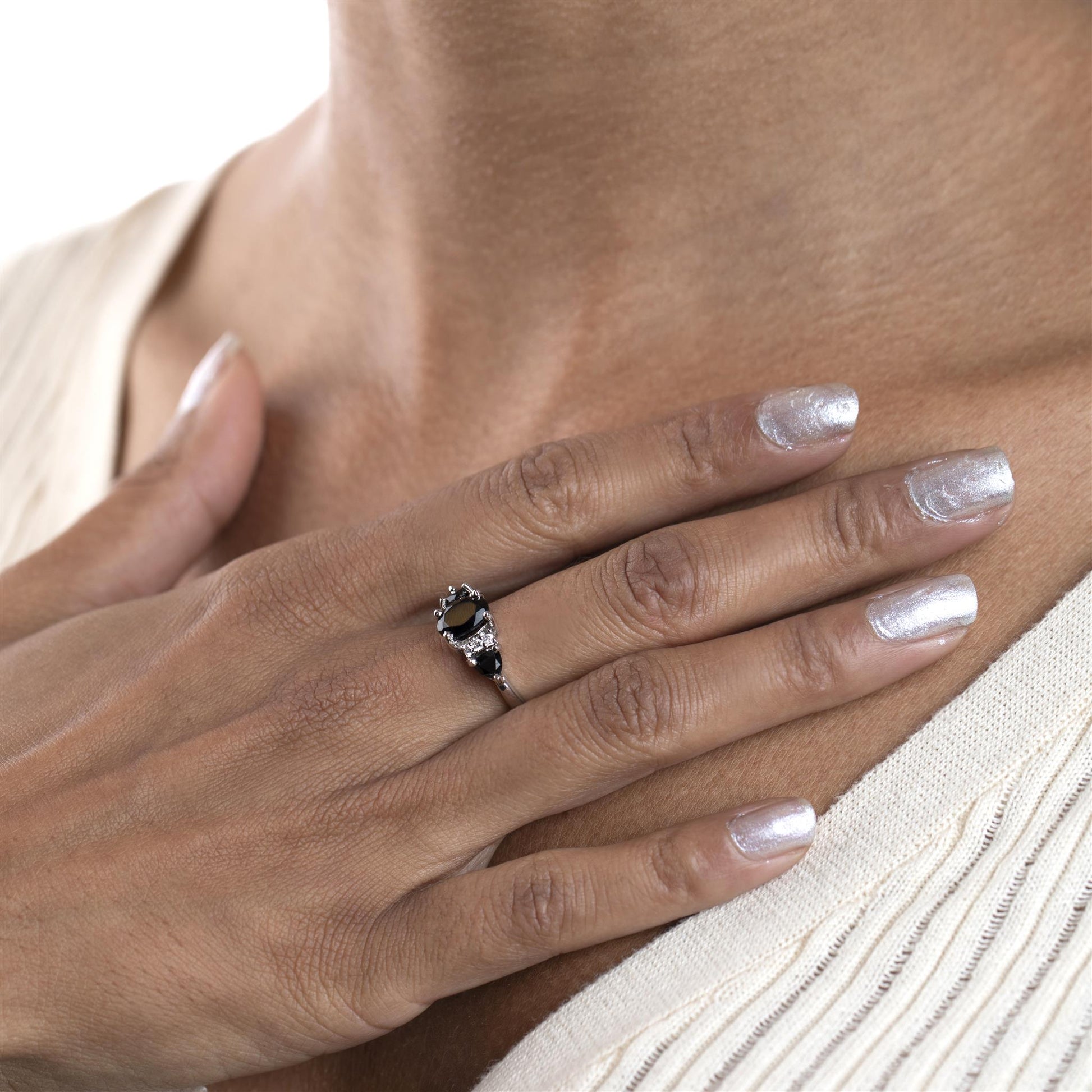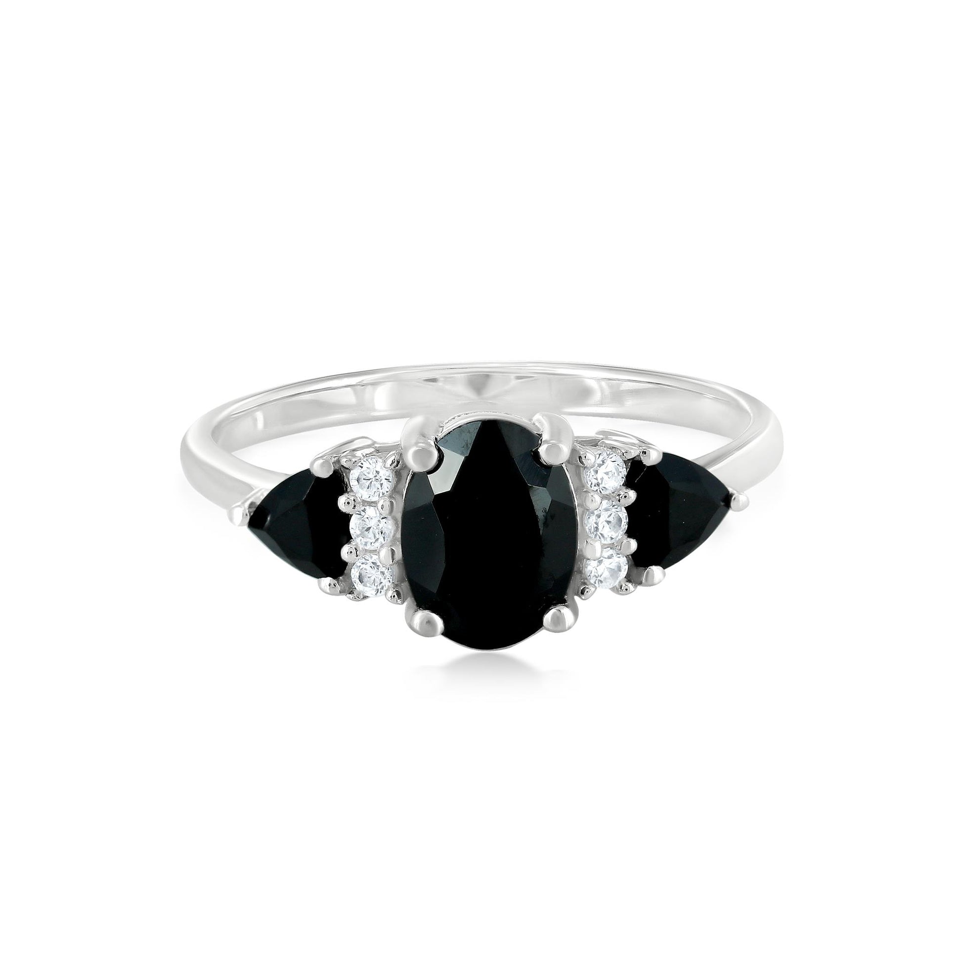 Introducing the Gemistry Birthstone Collection: stylish jewelry featuring your birth month’s unique gemstone. Celebrate your individuality with these beautiful, personal pieces—perfect for gifts or treating yourself! Handcrafted from .925 Sterling Silver, this stunner features one 8X6mm oval center stone and two 4mm trillion cut genuine Black Onyx stones in a prong setting with cubic zirconia accents. Rhodium plating helps to reduce tarnishing. Black Onyx is the alternative birthstone of the month of December. It is believed to promote emotional strength, protection, and grounding.