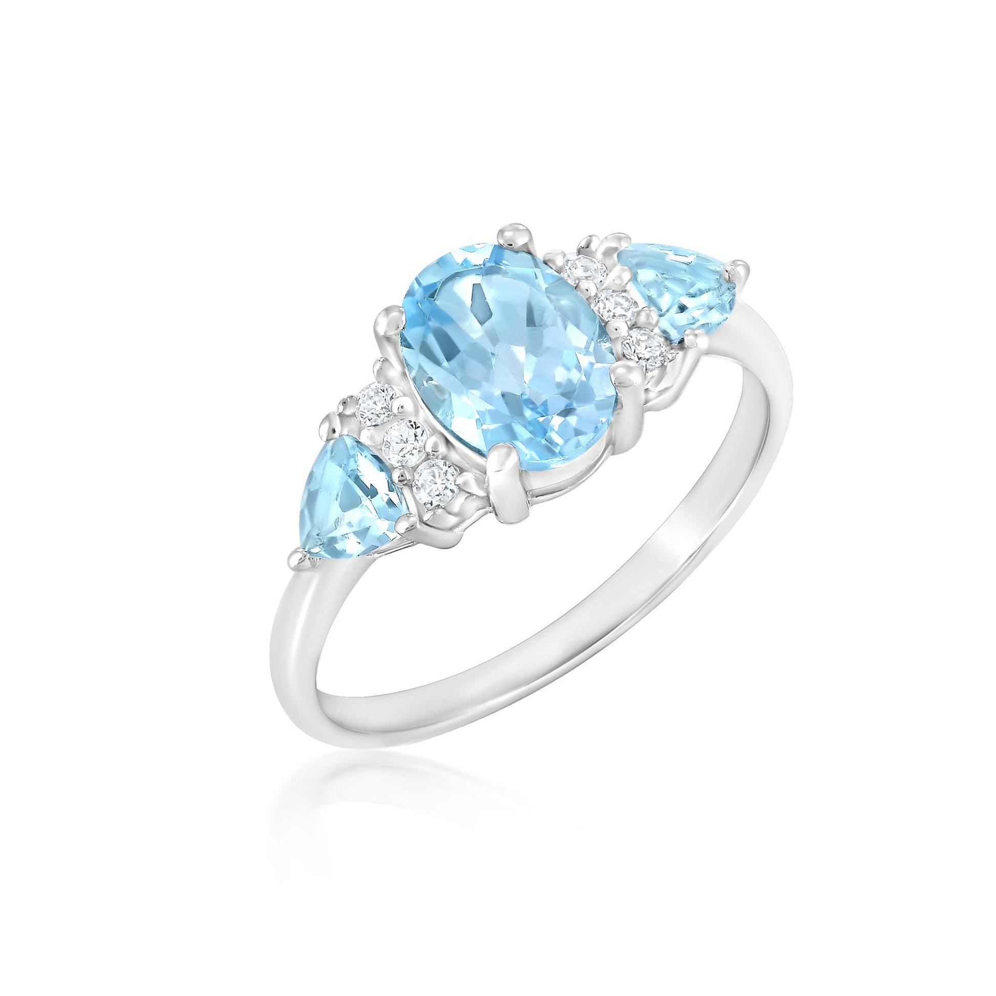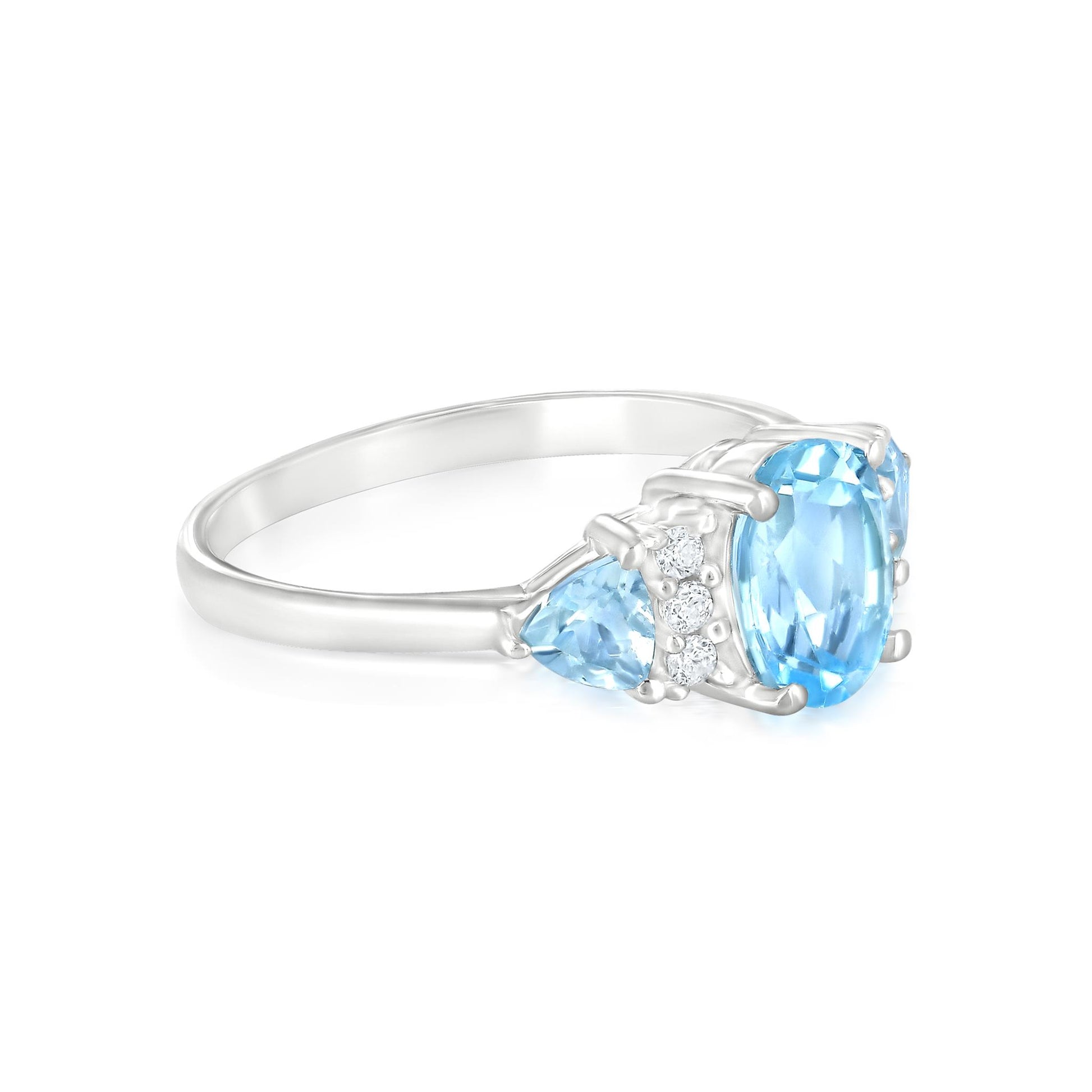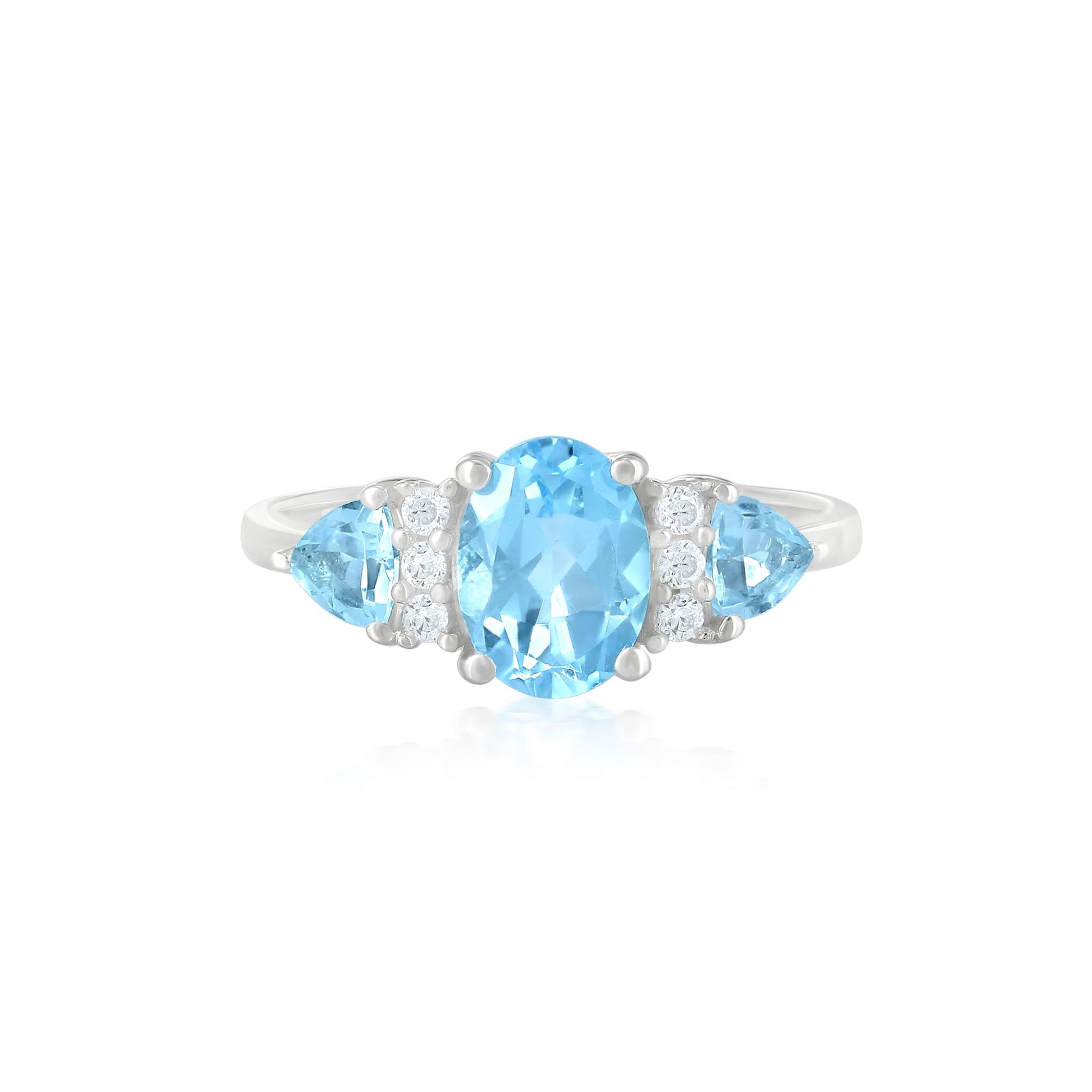 Introducing the Gemistry Birthstone Collection: stylish jewelry featuring your birth month’s unique gemstone. Celebrate your individuality with these beautiful, personal pieces—perfect for gifts or treating yourself! Handcrafted from .925 Sterling Silver, this stunner features one 8X6mm oval center stone and two 4mm trillion cut genuine Blue Topaz stones in a prong setting with cubic zirconia accents. Rhodium plating helps to reduce tarnishing. Blue Topaz is the birthstone of the month of December. It is believed to promote emotional balance, enhance creative expression.