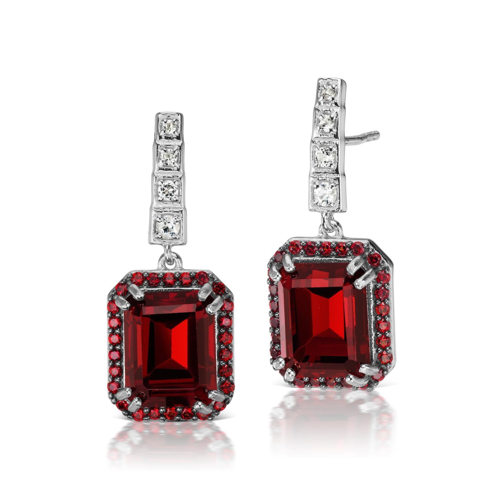 Introducing the Gemistry Birthstone Collection: stylish jewelry featuring your birth month’s unique gemstone. Celebrate your individuality with these beautiful, personal pieces—perfect for gifts or treating yourself! These earrings feature a glimmering octagonal 8mm x 10mm Pyrope Garnet gemstone at the center, surrounded by round-cut Pyrope Garnets, with round cut, pave-set White Topaz gemstones at the post, all set in genuine .925 Sterling Silver. They have secure post and clutch closures. Pyrope Garnet is a fiery red gemstone that symbolizes vitality, protection, and emotional strength. As a January birthstone, it is linked to passion, love, and commitment, while its grounding and energizing properties make it a powerful tool for both spiritual and emotional healing.