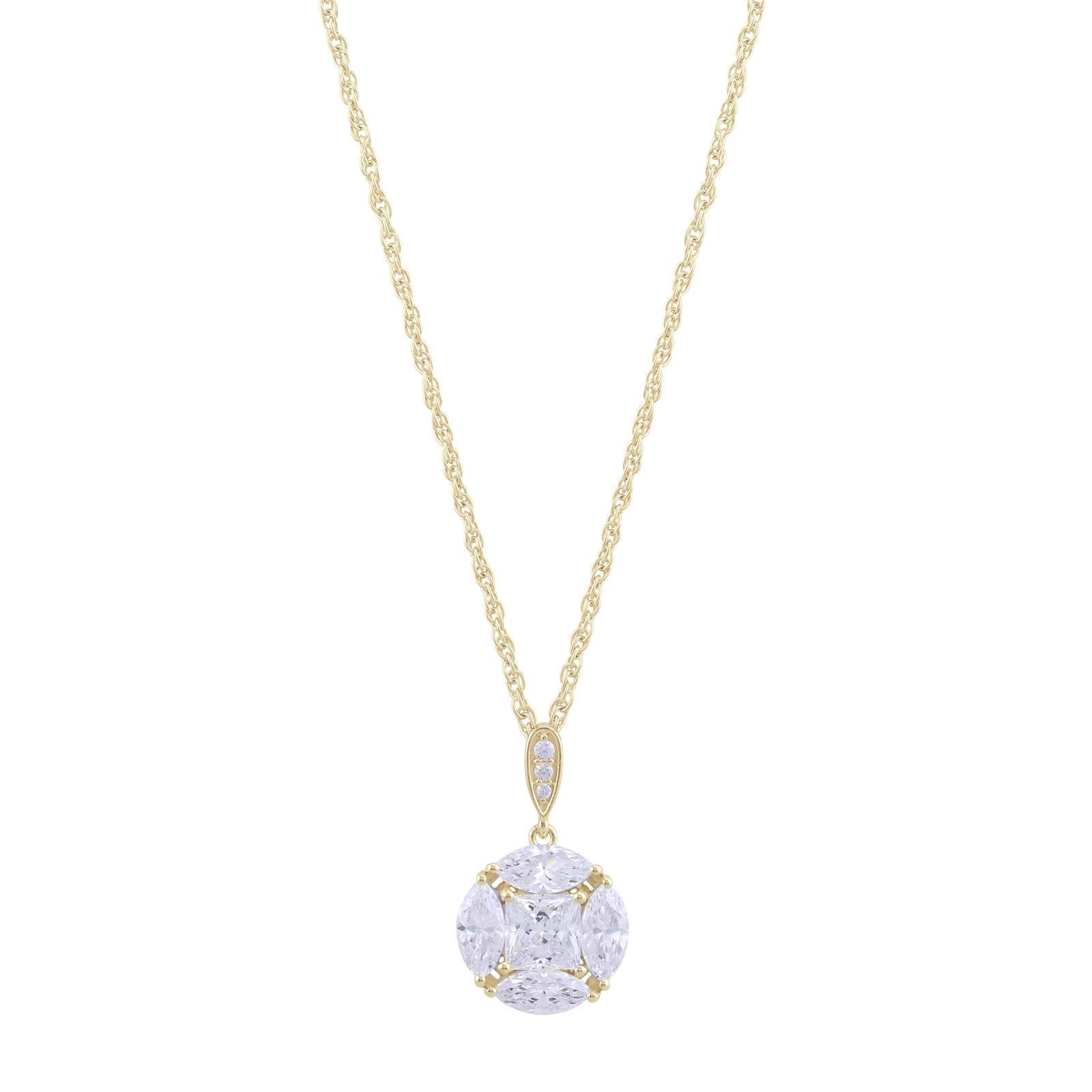A stunning illusion of sparkle. A single square shape CZ is set in the center of a frame of marquise shapes to create the look of one large stone pendant. choice of sterling silver or gold vermeil 18"L rope necklace with lobster clasp CZ: 5.67 cts
