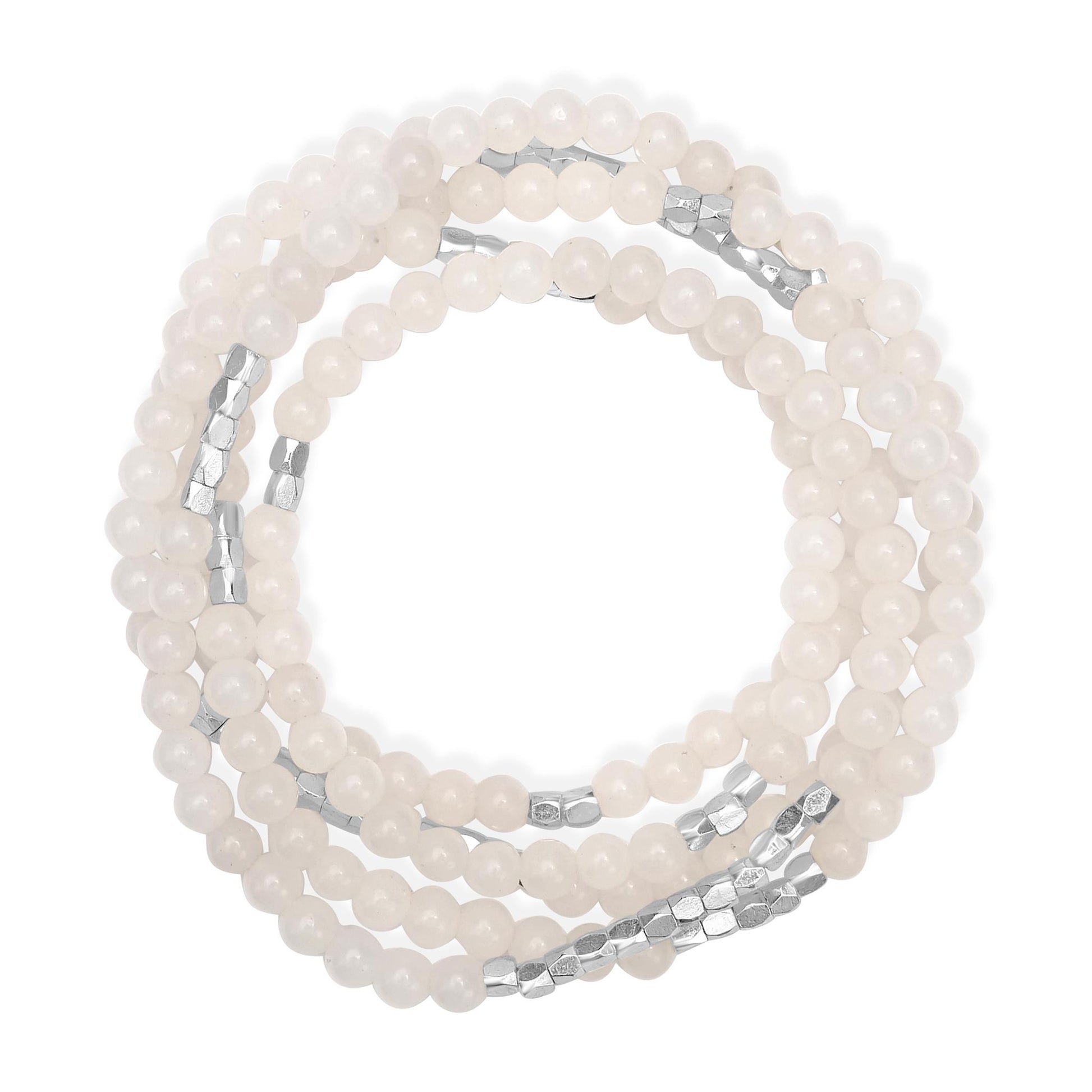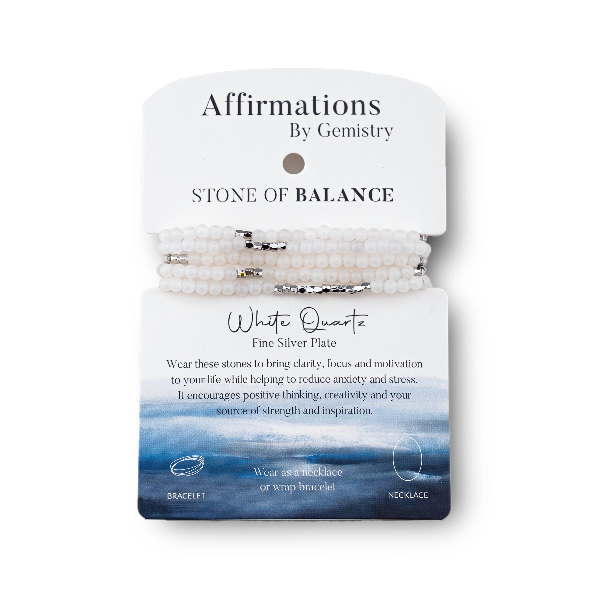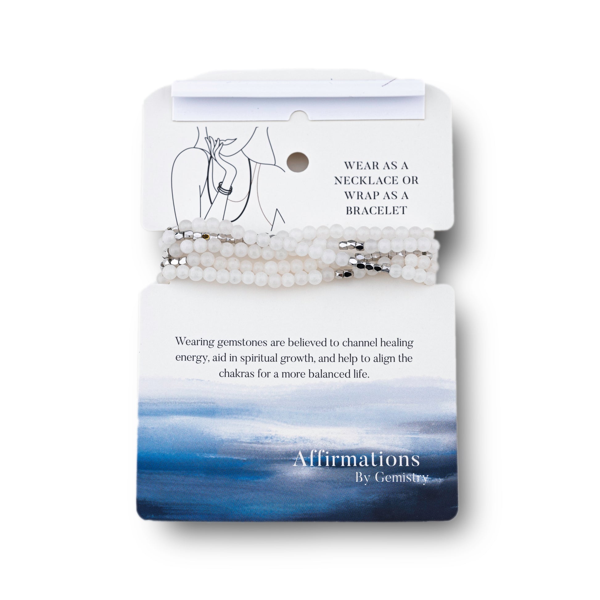 The Affirmations Wrap Bracelets by Gemistry are the perfect way to embrace your love of fashion while unlocking the healing energy of that comes from wearing our genuine gemstones. Wearing gemstones is believed to help to open, balance and harmonize the body’s seven chakras for improved physical and spiritual health. Different gemstones are associated with each of the chakras, providing grounding, security, protection and emotional healing. Each gemstone in our collection is both beautiful and meaningful and can be styled as either a wrap bracelet or used in a single strand as a necklace. The Silver-Plated Brass Wrap Bracelet from Gemistry features a wrapped strand of 2mm round White Quartz beads interspersed with Silver-Plated Brass accents. The simple strand design allows the bracelet to wrap around the wrist multiple times, creating a layered look from a single piece. The vibrant gemstone beads contrast with the shiny Silver-Plated Brass, creating a striking and elegant appearance. This bracelet is flexible, adjustable, and easy to wear and style with casual outfits and formal attire alike, making it ideal for fashion enthusiasts, gemstone lovers, gift givers, and anyone looking for a pop of chic!