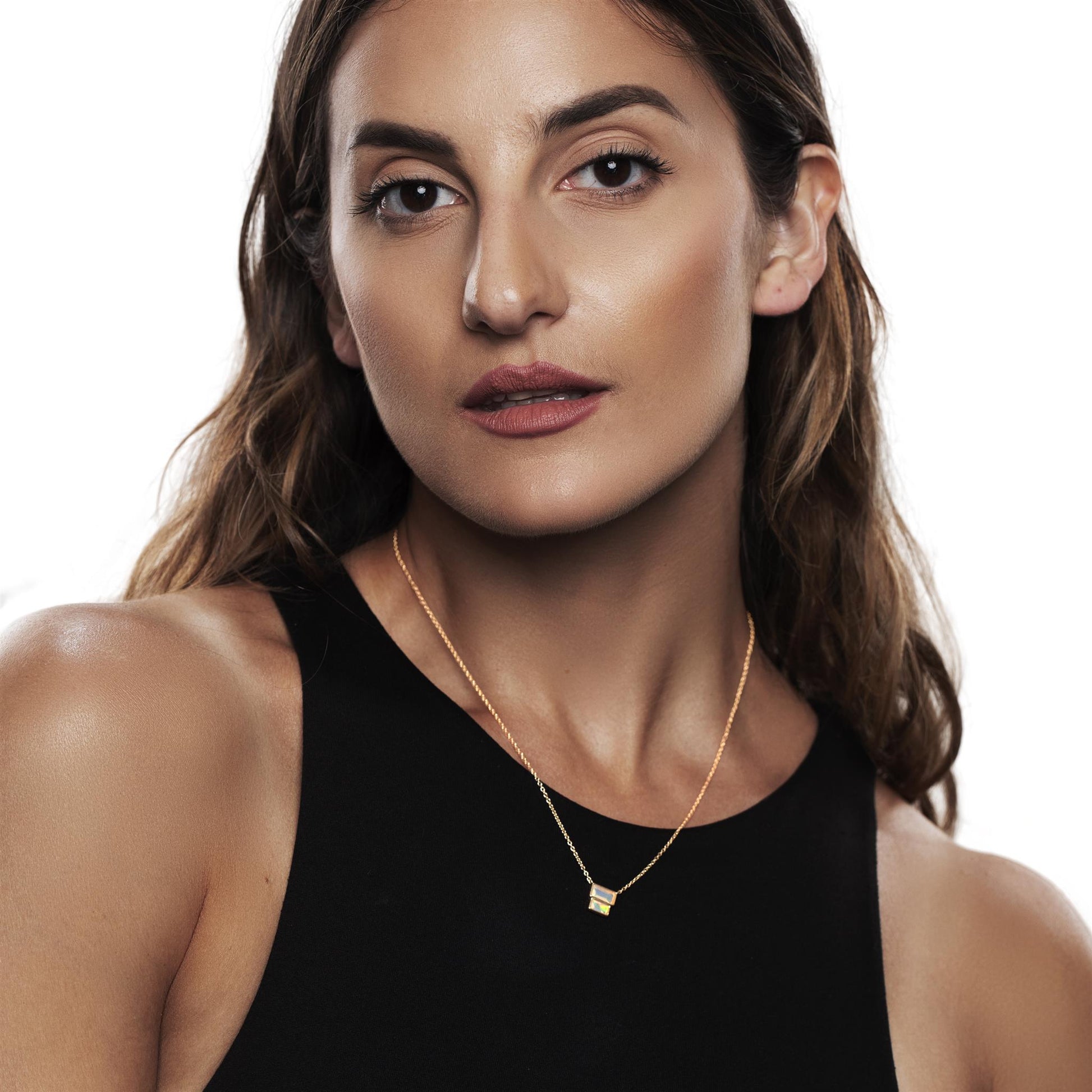 This necklace features genuine baguette Opal gemstones in a stacked formation that is meticulously handcrafted by skilled artisans. The stone is the birthstone of October. The pendant is a simple and subtle piece that can be worn everyday.