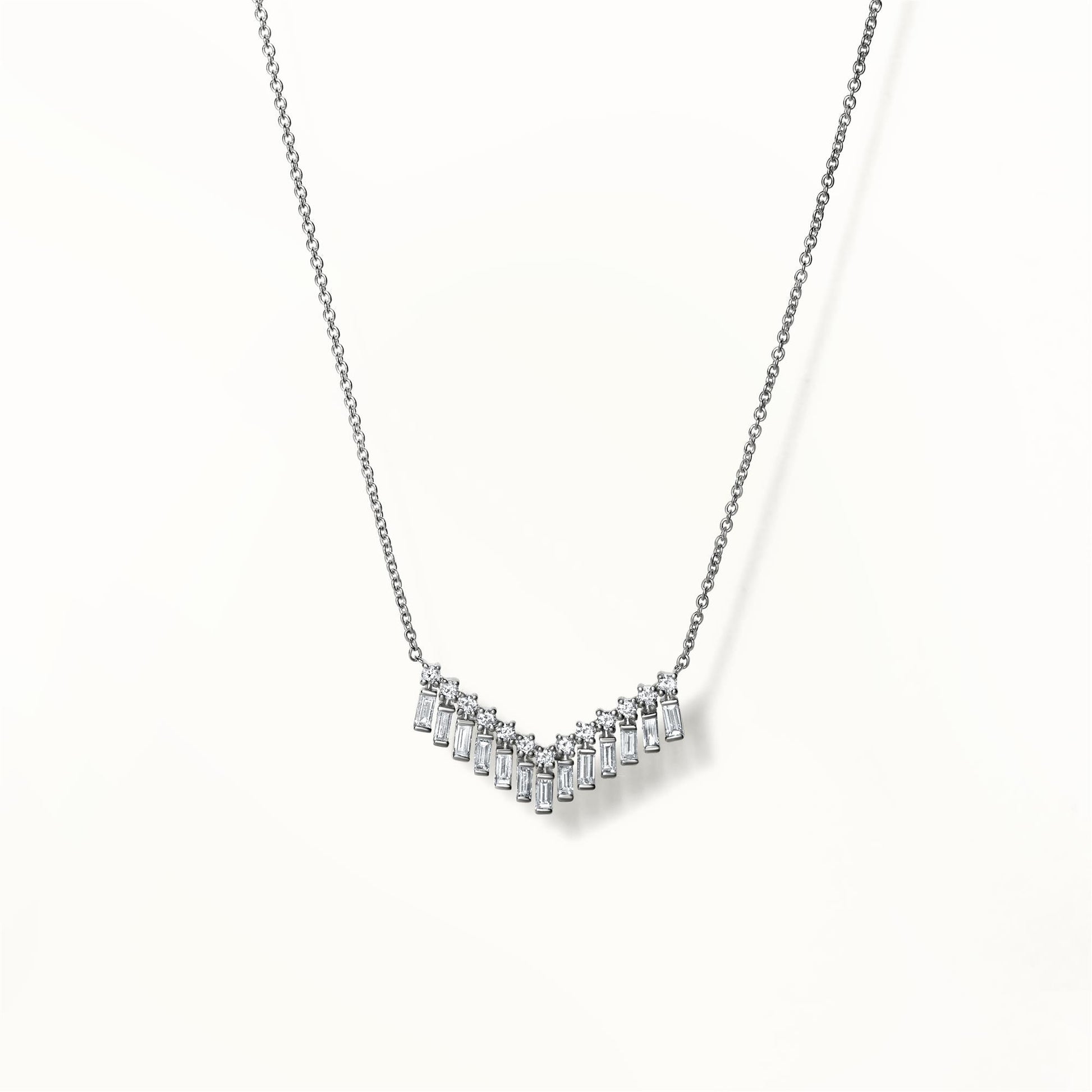 Embrace your attires with this stunningly designed necklace. This necklace has a pendant with baguette-cut diamonds draping down elegantly from a beautiful chain.