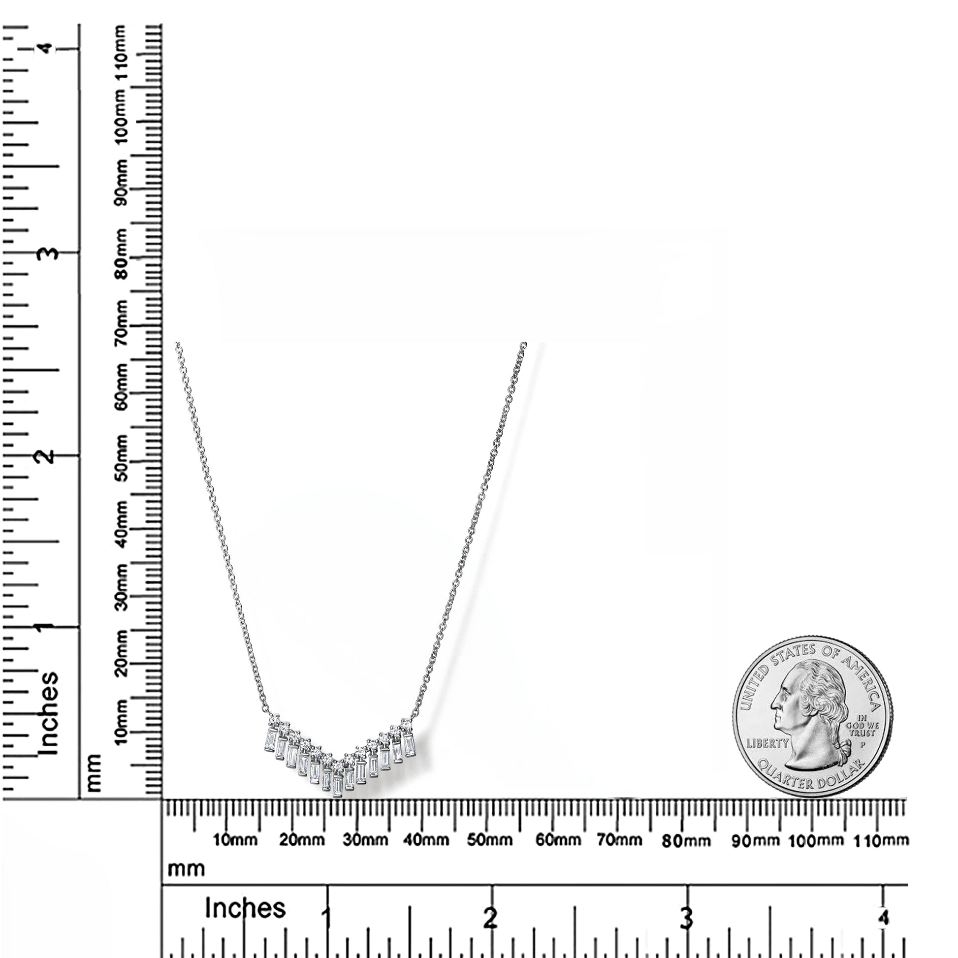 Gemistry Womens or Girls 14K White Gold Baguette White Diamond Multi Strand Necklace with 15 Inch Chain. April Birthstone Month, Gift For Her.