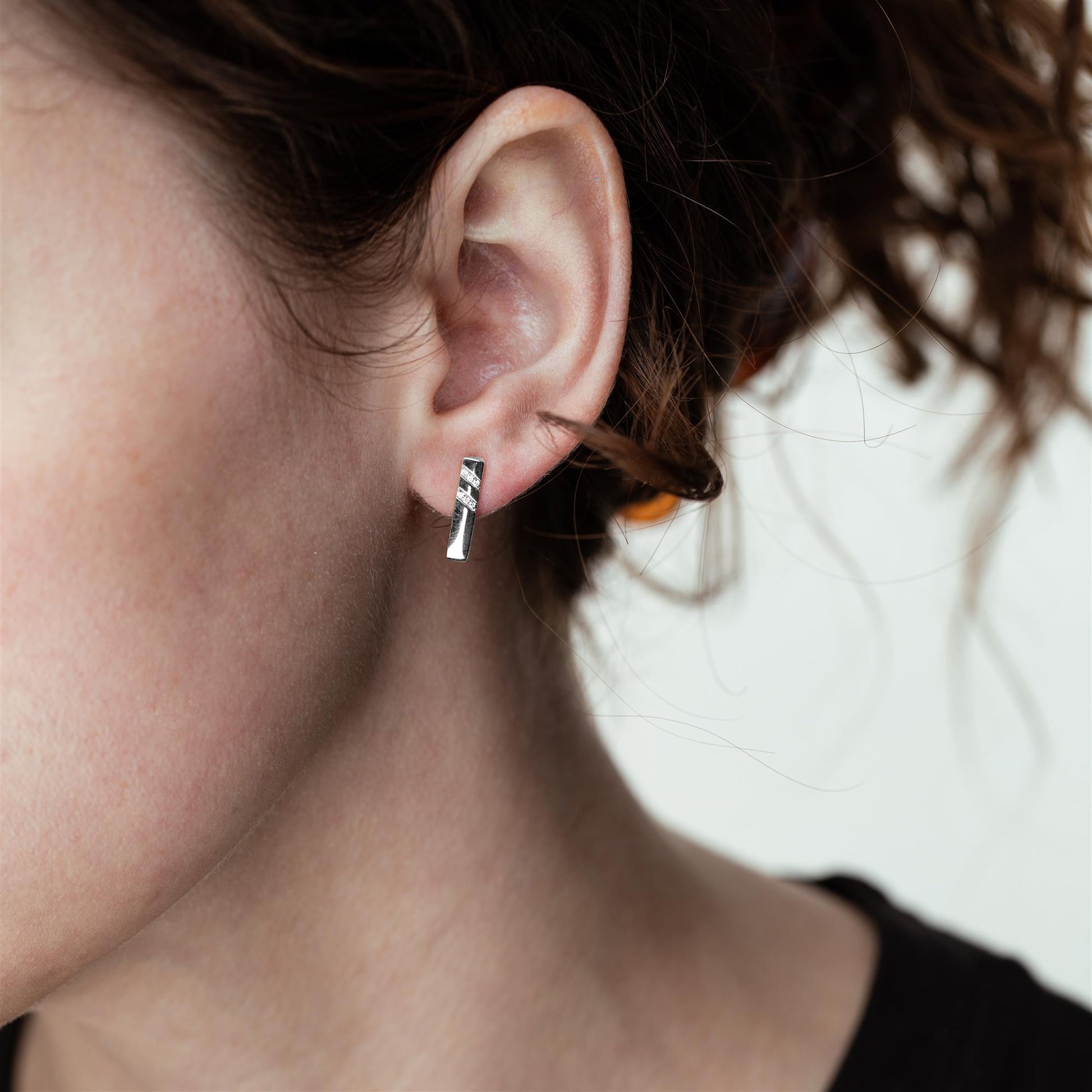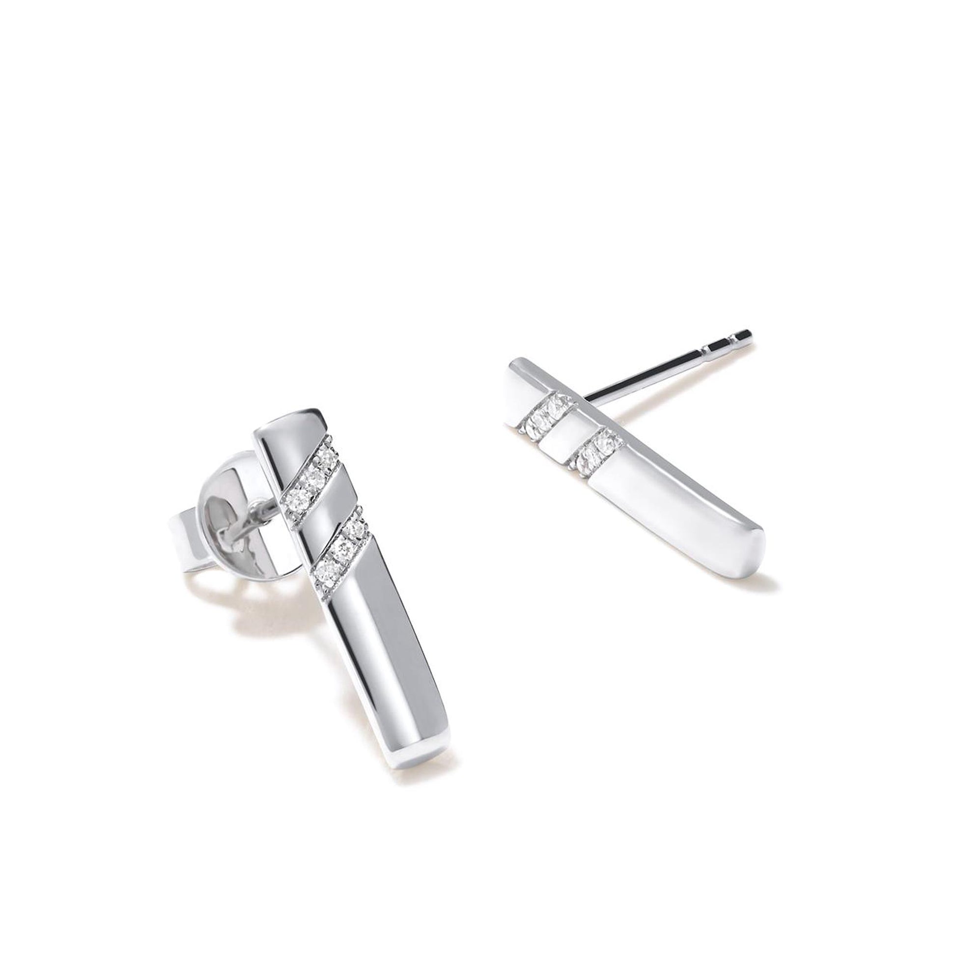 The Gemistry Dazzling Diamonds Collection showcases an array of stunning jewelry, and each piece is adorned with diamonds that capture and reflect light, exuding unparalleled elegance and sparkle. The Gemistry Diamond Bar Stud Earrings are made with a total of 0.042 carats of Diamonds (12 individual Diamonds) and set in genuine 14K White Gold. The round Diamonds (GH Color and SI1) are micro-pave set and have a post and clutch closure for easy on and off. Each Diamond is meticulously selected for its clarity, hue, and saturation, ensuring your earrings are truly one-of-a-kind.
