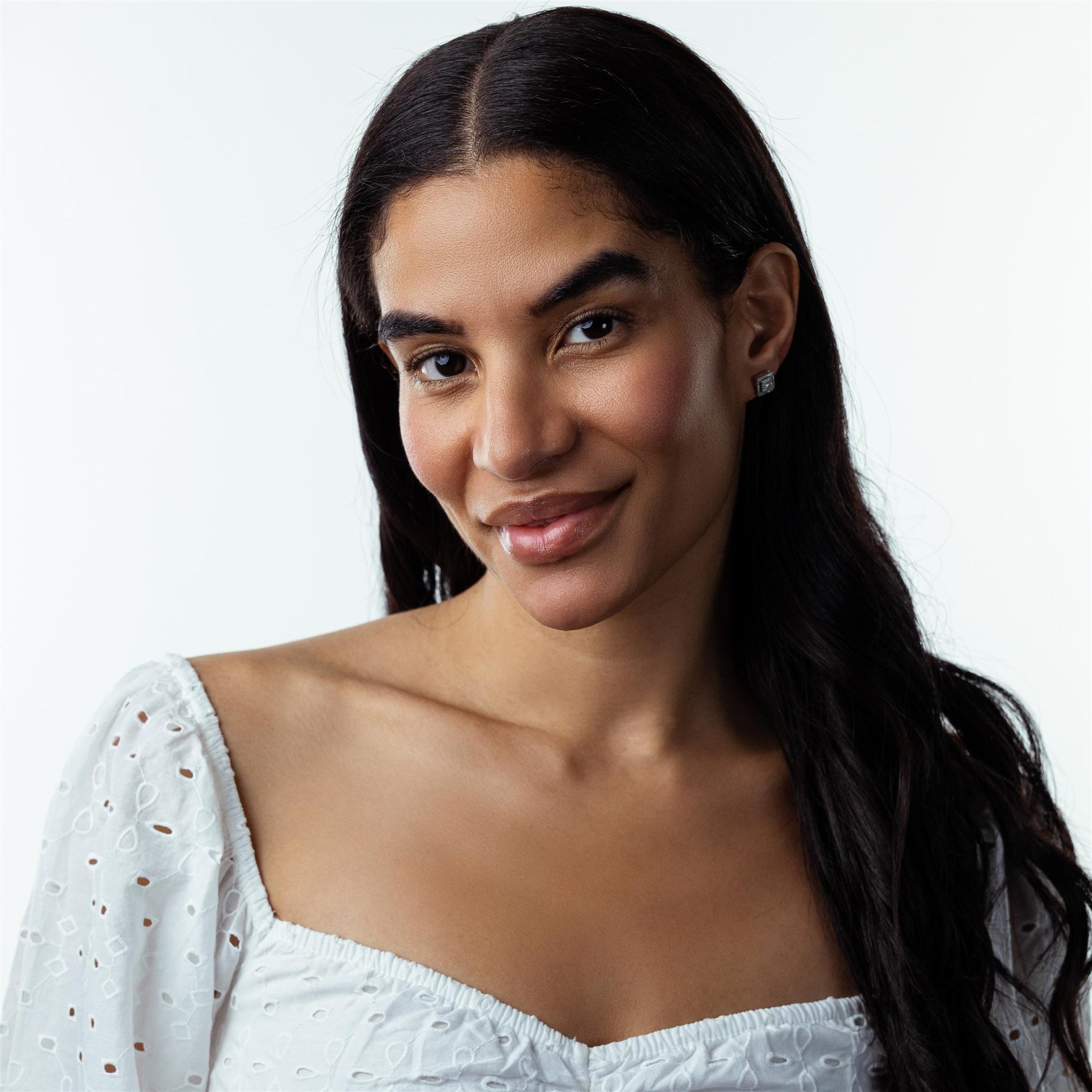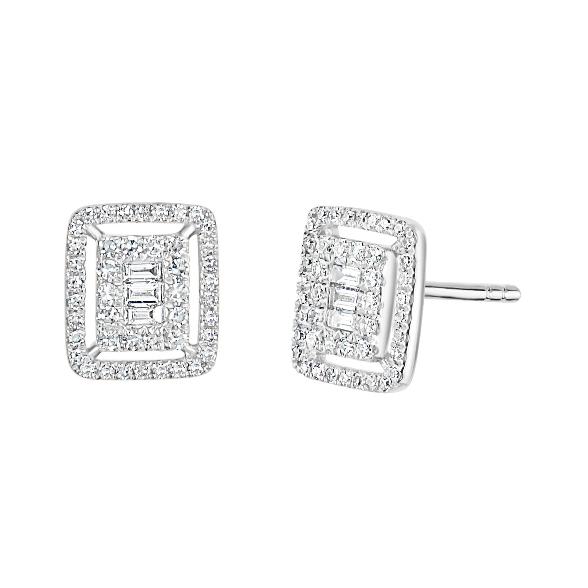 The Gemistry Dazzling Diamonds Collection showcases an array of stunning jewelry, and each piece is adorned with diamonds that capture and reflect light, exuding unparalleled elegance and sparkle. These genuine Diamond stud earrings exude effortless style. The combination of the center baguette Diamonds surrounded by the pave-set round Diamonds and 14K White Gold openwork frames create sparkle and movement and perfectly frame your face. They feature post and clutch closures for a secure and comfortable fit. This pair of studs is a wardrobe essential - pair them with any outfit. Each Diamond is meticulously selected for its clarity, hue, and saturation, ensuring your earrings are truly one-of-a-kind.