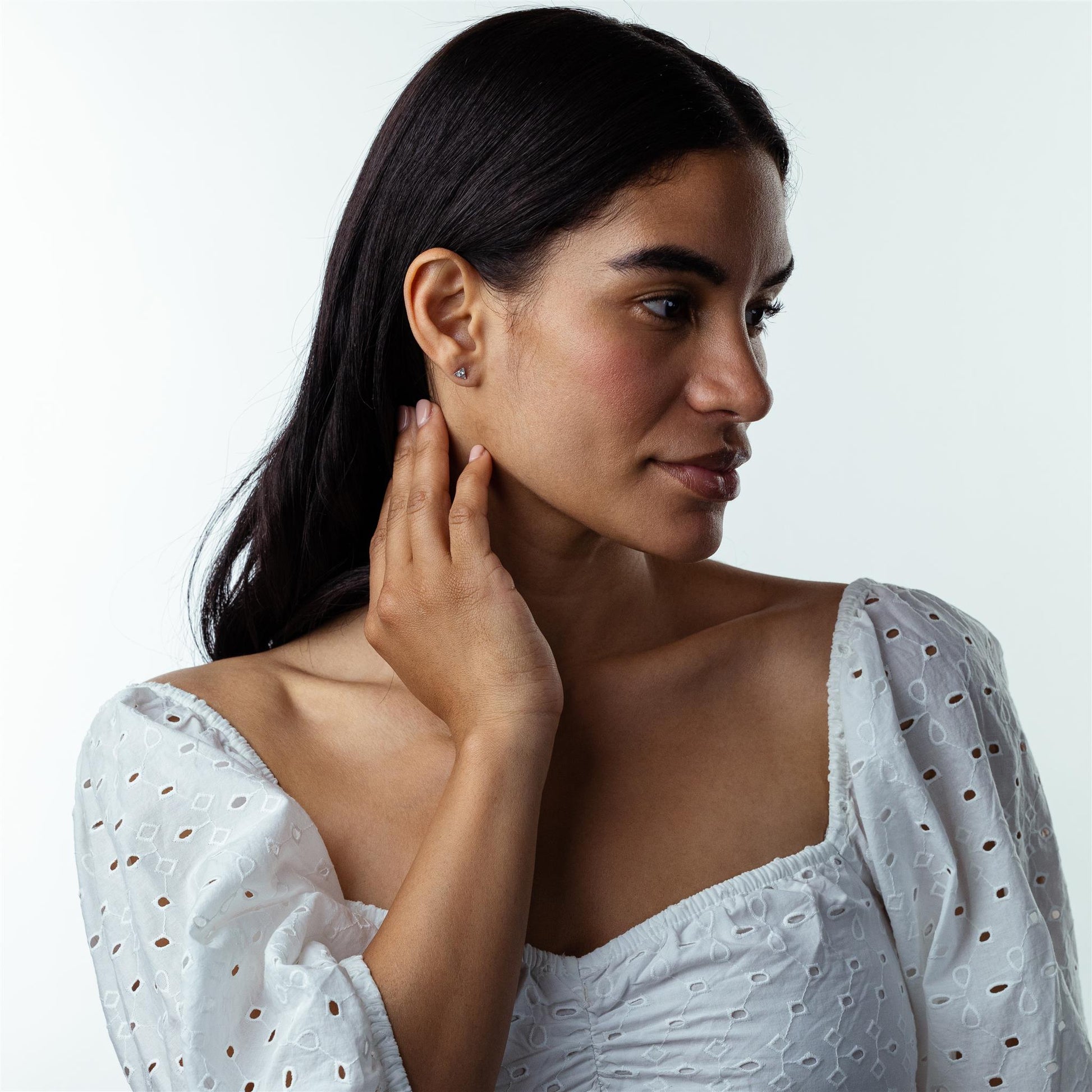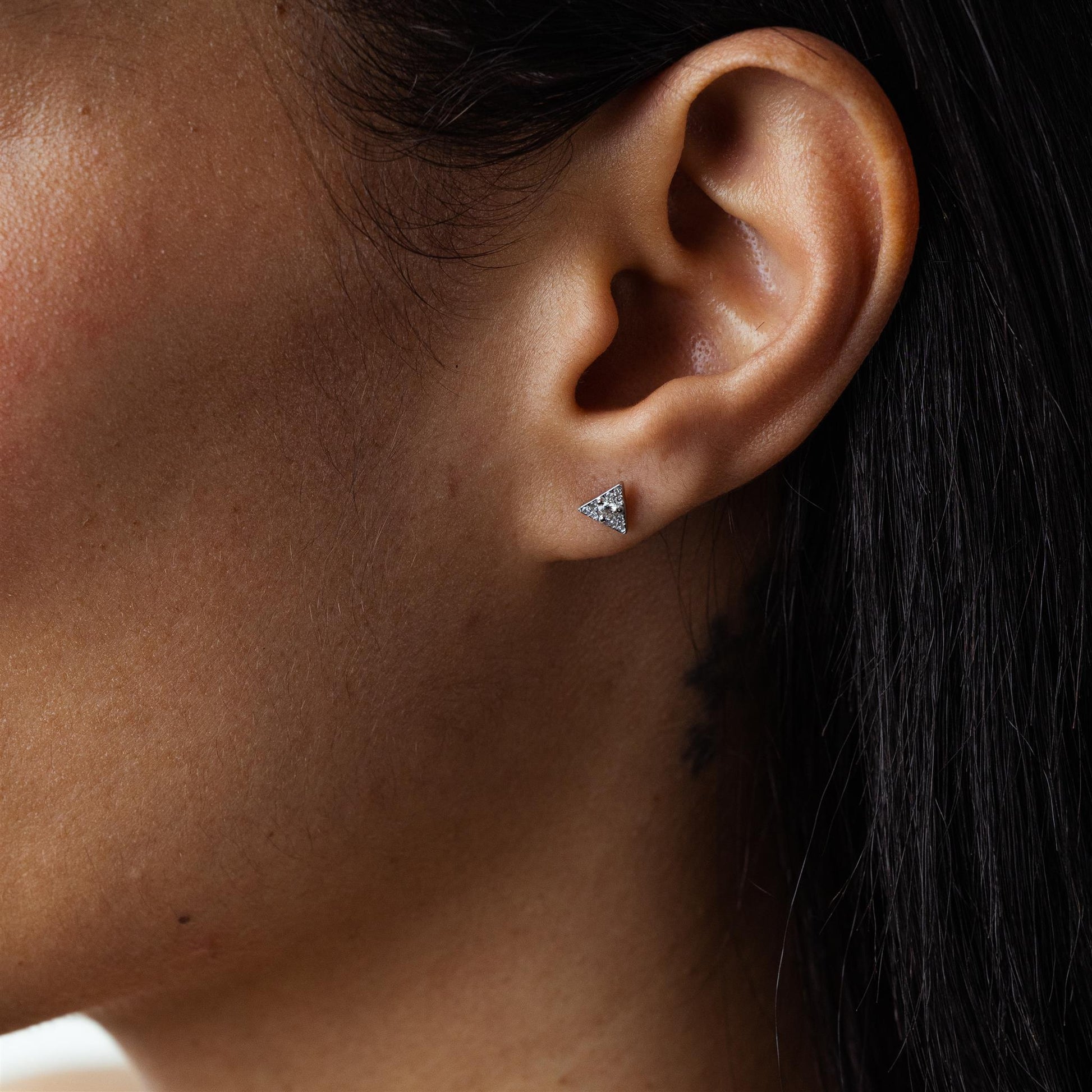 The Gemistry Dazzling Diamonds Collection showcases an array of stunning jewelry, and each piece is adorned with diamonds that capture and reflect light, exuding unparalleled elegance and sparkle. The Gemistry Diamond Triangle Stud Earrings are made with a total of 0.11 carats of Diamonds (20 individual Diamonds) and set in genuine 14K White Gold. The round Diamonds (GH Color and SI1) are micro-pave and prong-set and have a post and clutch closure for easy on and off. Each Diamond is meticulously selected for its clarity, hue, and saturation, ensuring your earrings are truly one-of-a-kind.