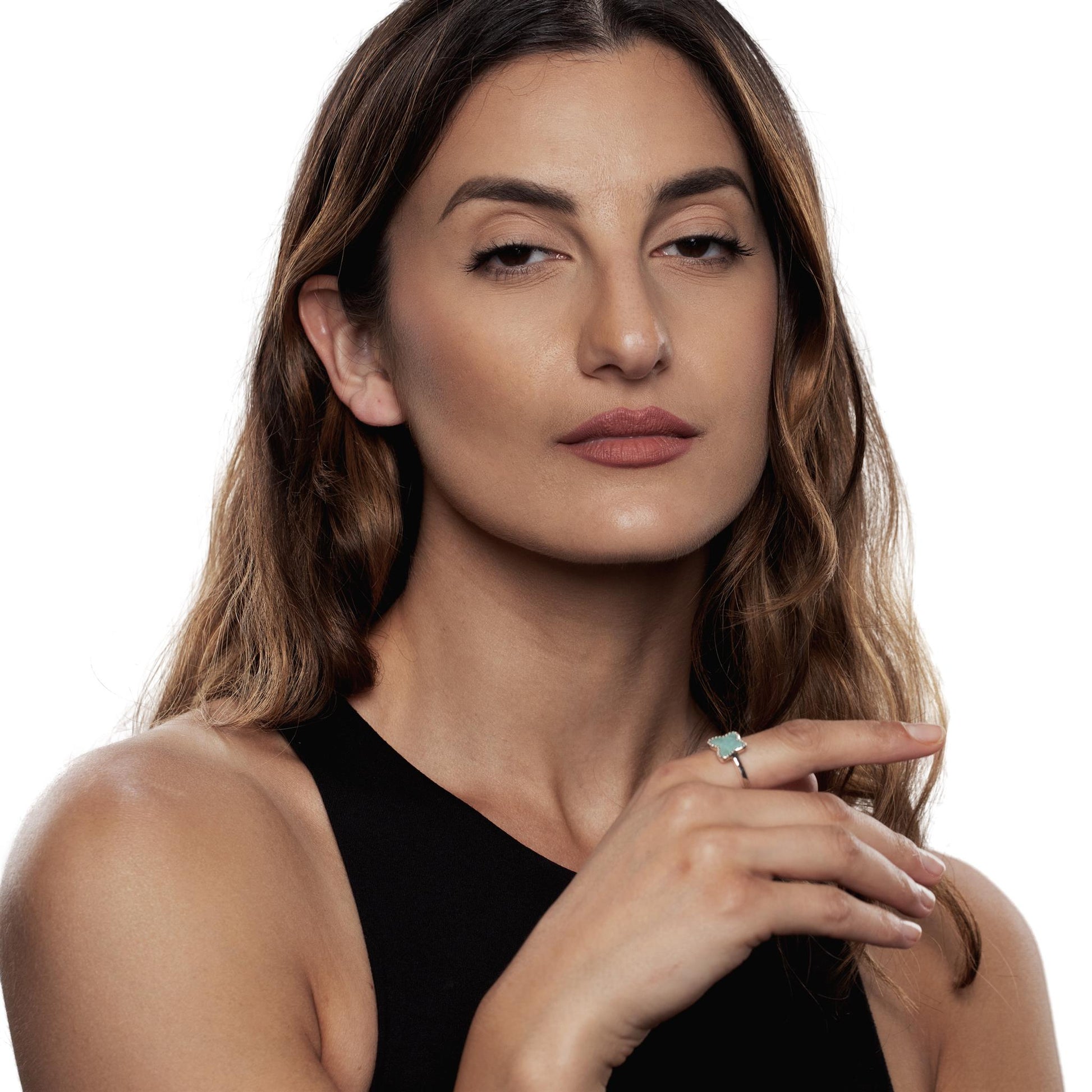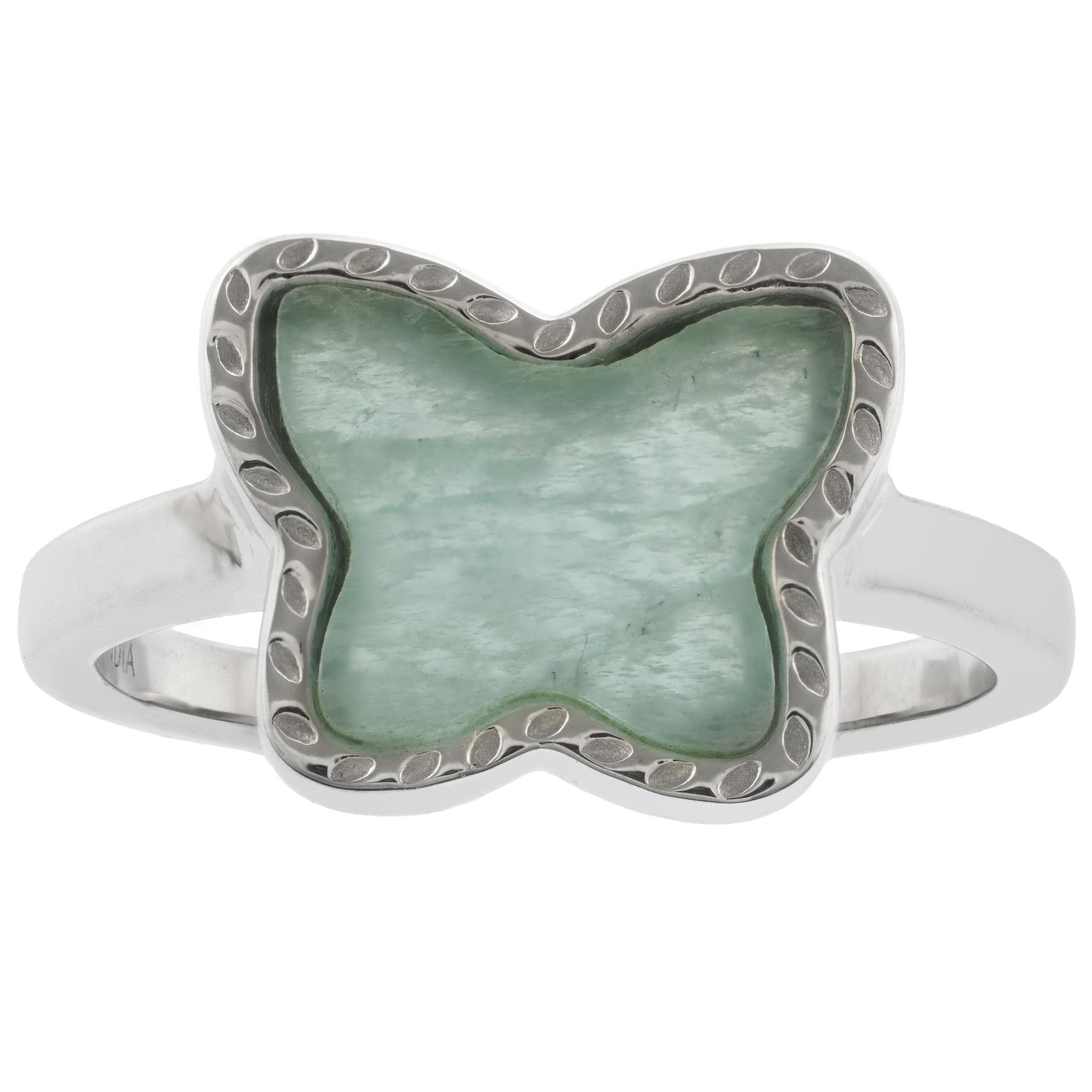 Introducing the Gemistry Boho Collection: eclectic, free-spirited jewelry that adds bohemian charm to any outfit. Celebrate your individuality with these unique, personal pieces—perfect for gifts or treating yourself! Handcrafted from genuine Sterling Silver, this stunning ring features a 10mm x 8mm Amazonite gemstone in a butterfly design at the center of a gleaming band with a textured bezel setting. Amazonite is the birthstone for the month of March. It is often associated with tranquility and peace and is believed to calm the mind, alleviate stress, and help soothe emotional trauma.