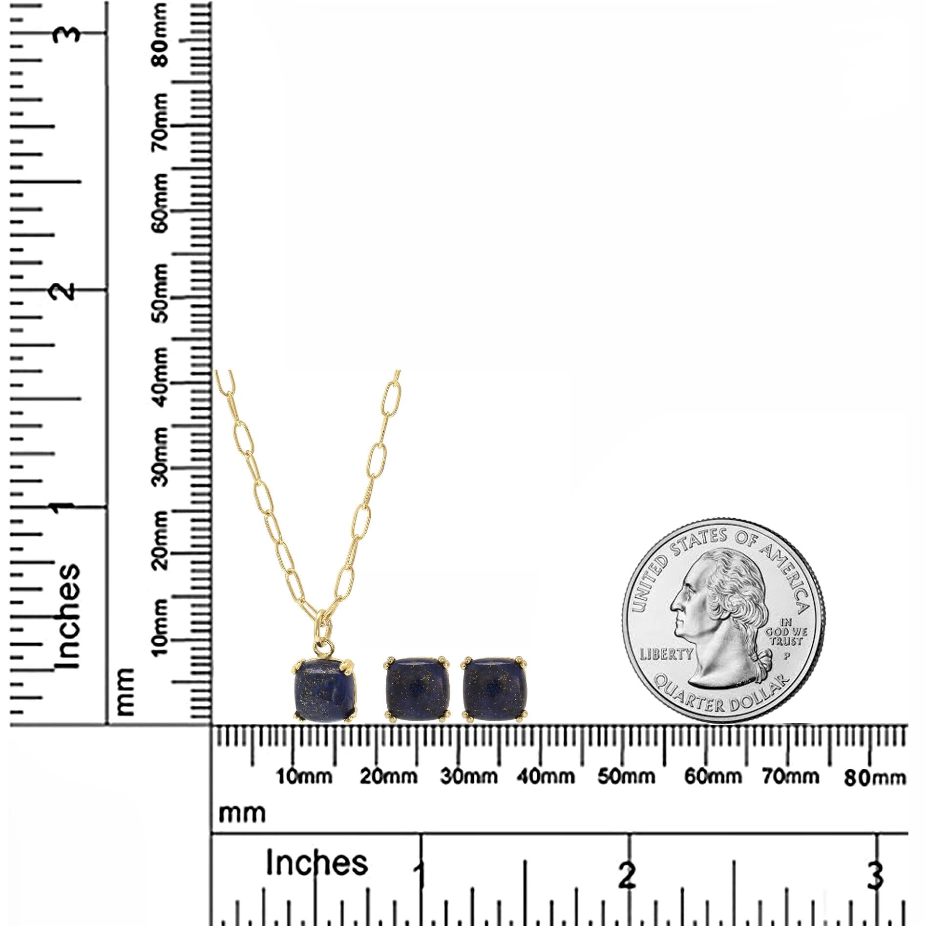 Celebrate Southwestern charm with the Gemistry Southwest Collection. Inspired by desert landscapes and artistry, each piece offers bold, handcrafted beauty. Elevate your style with this 18-inch pendant necklace and earring set, featuring striking 7MM square Lapis cabochon gemstones. The brilliant hues of the Lapis stones add a touch of natural elegance, while their smooth, polished finish showcases the stone’s calming beauty. The necklace is crafted from 14K Gold-Plated Sterling Silver and is designed with a sturdy lobster claw clasp, ensuring both security and ease of wear. The 18-inch length sits gracefully at the collarbone, making it perfect for layering or wearing alone as a standout piece. The matching earrings feature the same beautiful Lapis cabochons and are secured with post and clutch closures for comfortable, all-day wear. Lapis Lazuli is revered for its deep connection to wisdom, truth, and spiritual growth, making this set not only a beautiful accessory but also a meaningful one. Whether you’re dressing up for a special occasion or adding a touch of elegance to your everyday look, this set is a perfect balance of classic design and modern sophistication. Each gemstone is meticulously selected for its clarity, hue, and saturation, ensuring your jewelry is truly one-of-a-kind.