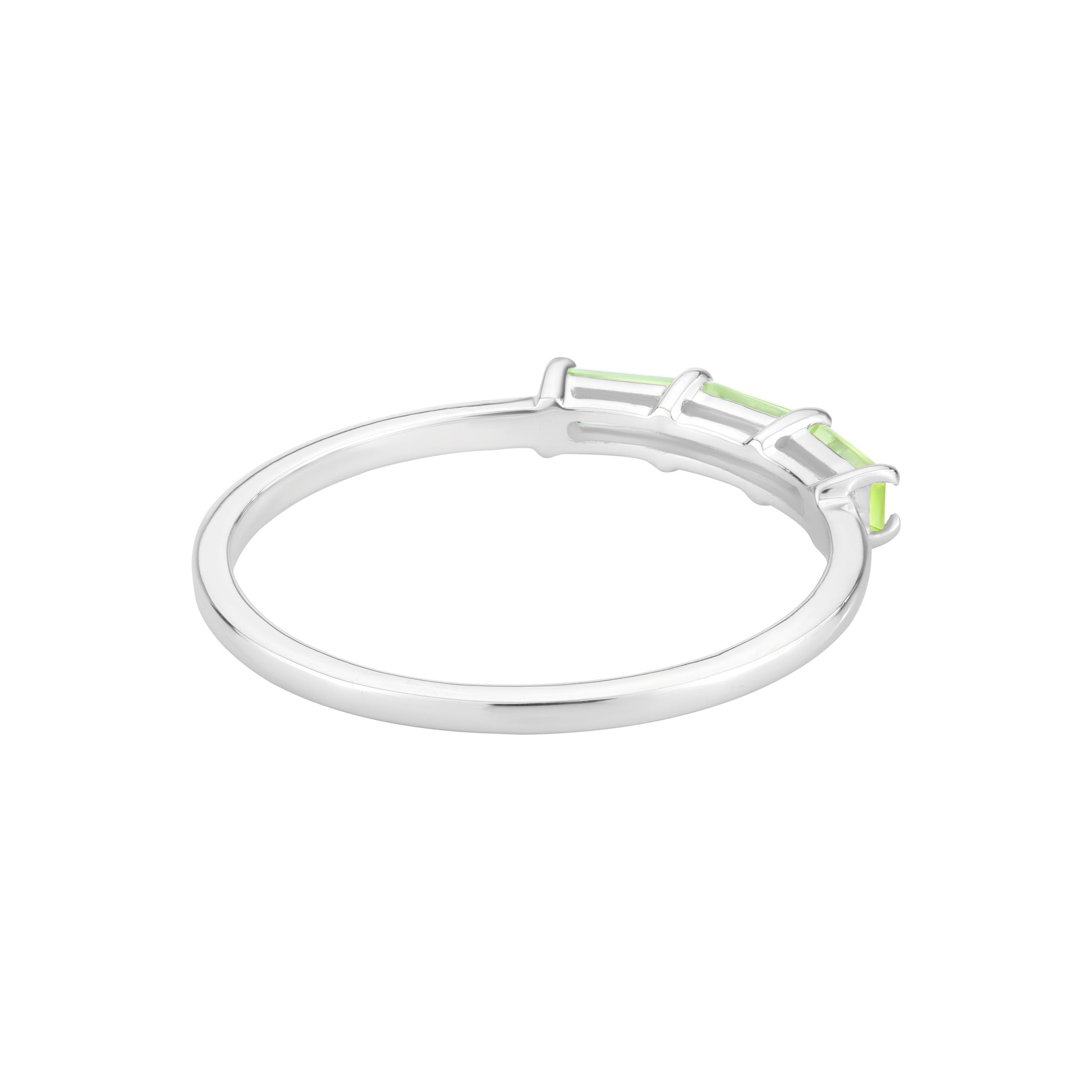 Introducing the Gemistry Stack Ring Collection : a versatile assortment of rings designed for effortless layering. Each piece combines timeless sophistication with modern flair, perfect for adding a touch of chic to any outfit. Mix, match, and stack to create your own unique style statement. The Gemistry Heidi 3-Stone Baguette Shape Gemstone Ring is a stunning addition to your jewelry collection. Handcrafted from 14K White Gold, this prong-set ring features three genuine Peridot gemstones. Peridot, known for its vibrant light green hue and symbolic meaning of prosperity and good fortune, adds a fresh and meaningful touch to this elegant piece. Our gemstone buyers meticulously select each Peridot for its clarity, hue, saturation, and value, ensuring your ring is one-of-a-kind.