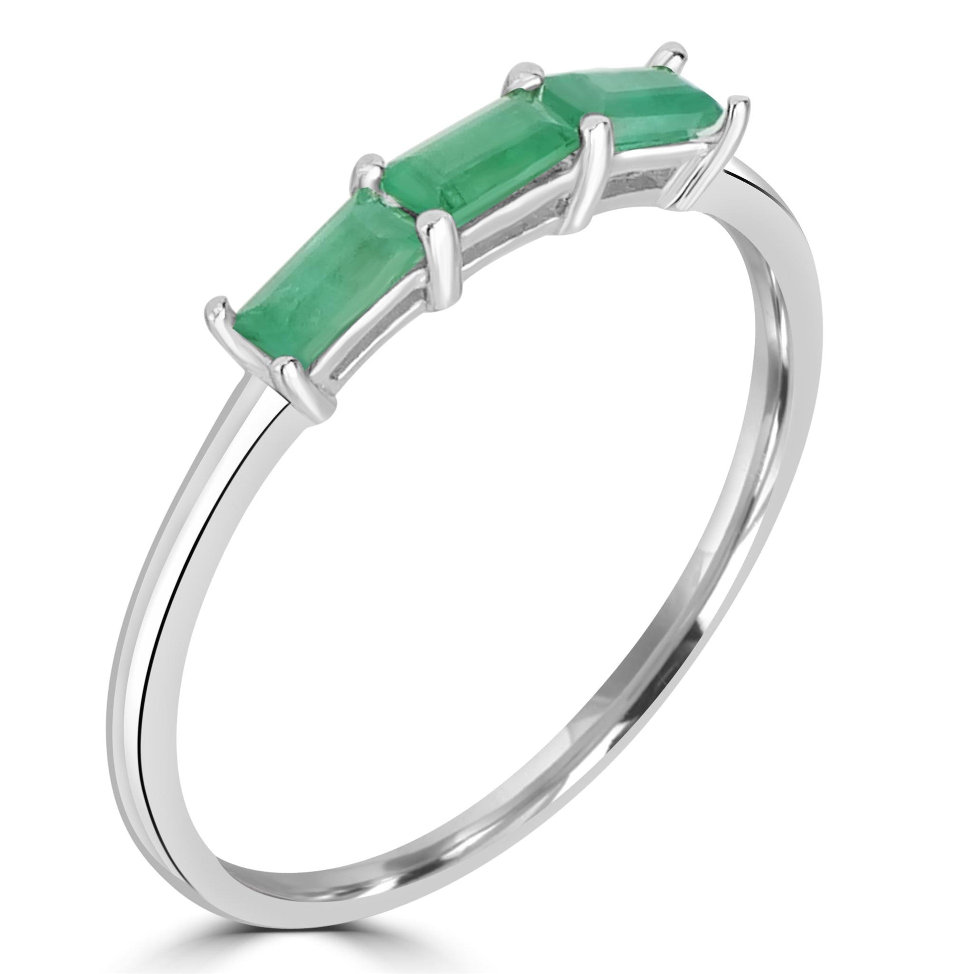 Introducing the Gemistry Stack Ring Collection : a versatile assortment of rings designed for effortless layering. Each piece combines timeless sophistication with modern flair, perfect for adding a touch of chic to any outfit. Mix, match, and stack to create your own unique style statement. The Heidi 3-Stone Baguette Gemstone Ring is hand crafted from genuine Sterling Silver. The prong setting holds 3 genuine Emerald gemstones, perfect for those born in May. The Emerald birthstone symbolizes rebirth, love, and wisdom. Known for its rich green color, Emerald is often associated with the renewal of life and nature during spring.