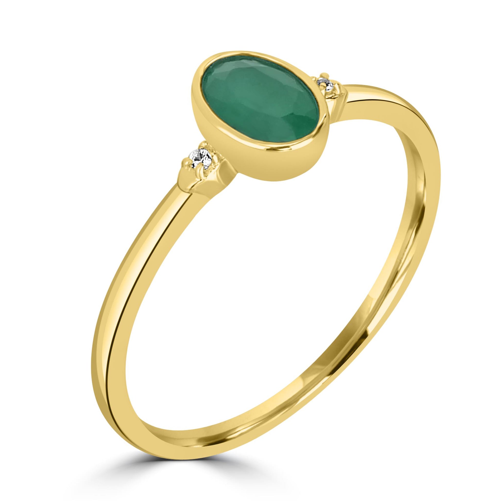 Introducing the Gemistry Stack Ring Collection : a versatile assortment of rings designed for effortless layering. Each piece combines timeless sophistication with modern flair, perfect for adding a touch of chic to any outfit. Mix, match, and stack to create your own unique style statement. The Kate Oval Cut Gemstone Ring is hand crafted from 14K Gold over Sterling Silver. The bezel setting holds a genuine oval cut Emerald gemstone, with a round White Topaz stone on either side. It is perfect for those born in May or for anyone who loves green jewelry. The Emerald birthstone symbolizes foresight, good fortune, and youth.