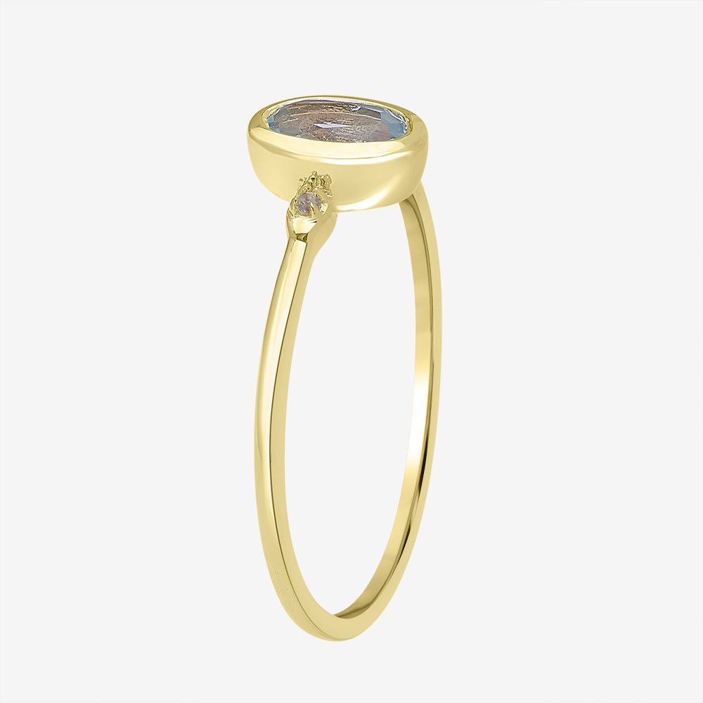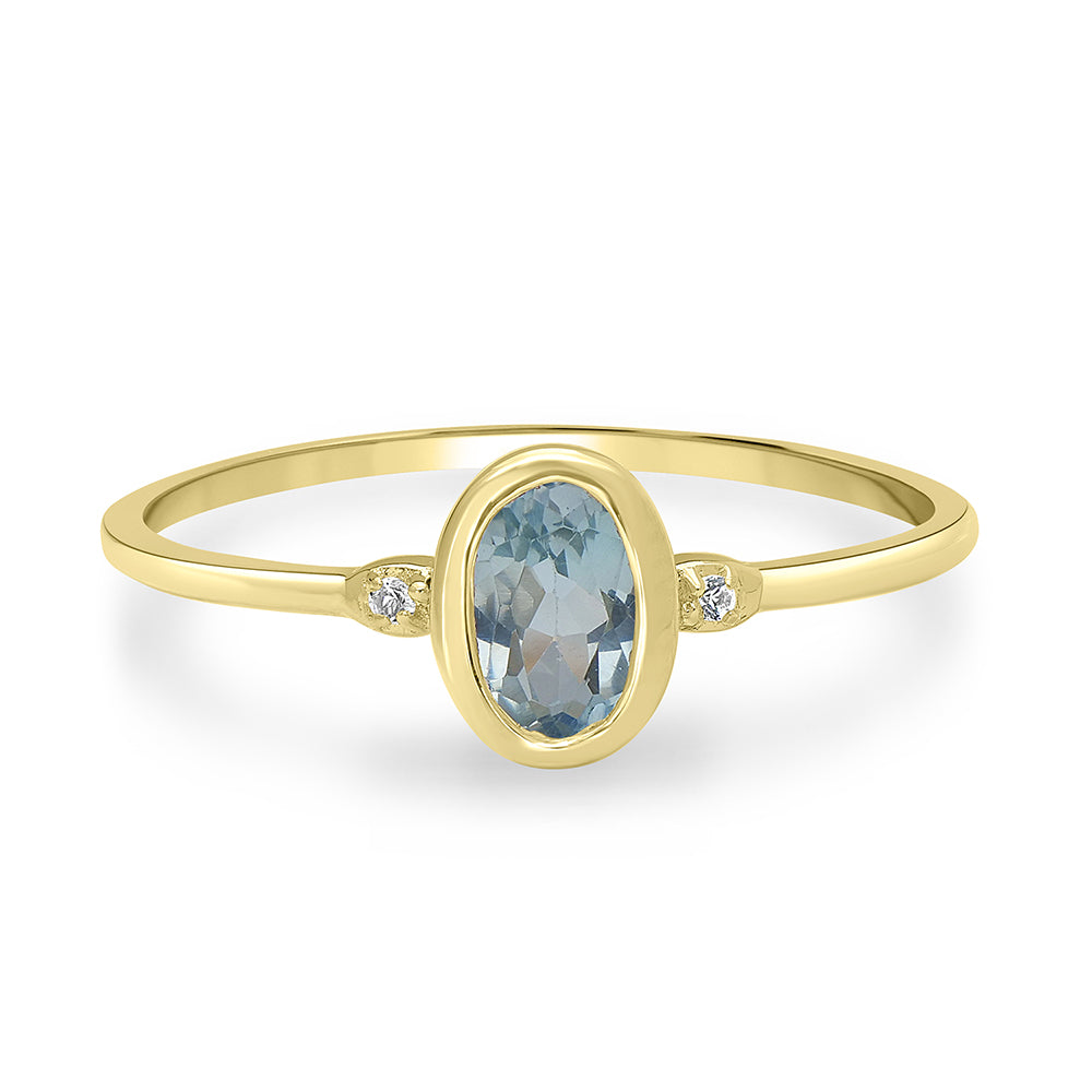 Introducing the Gemistry Stack Ring Collection : a versatile assortment of rings designed for effortless layering. Each piece combines timeless sophistication with modern flair, perfect for adding a touch of chic to any outfit. Mix, match, and stack to create your own unique style statement. The Gemistry Kate Oval Gemstone Ring is a stunning addition to your jewelry collection. This elegant ring is crafted from 14K Gold over Sterling Silver, featuring a bezel-set oval-shaped Swiss Blue Topaz gemstone, beautifully complemented by two Round White Topaz side stones. Swiss Blue Topaz, the birthstone for December, symbolizes honesty, deep emotional attachment, and clarity of feelings, making it a thoughtful gift or a meaningful addition to your own collection.