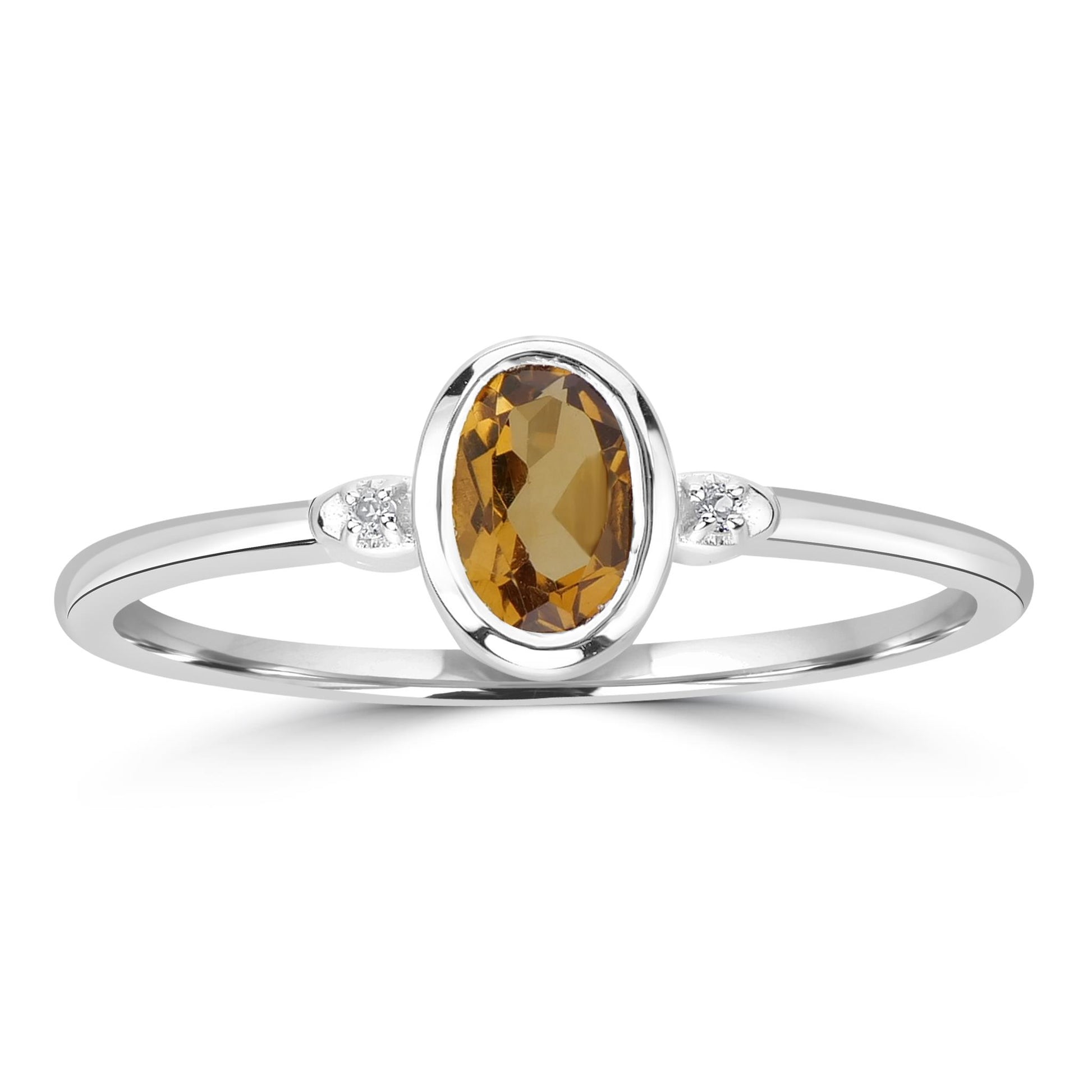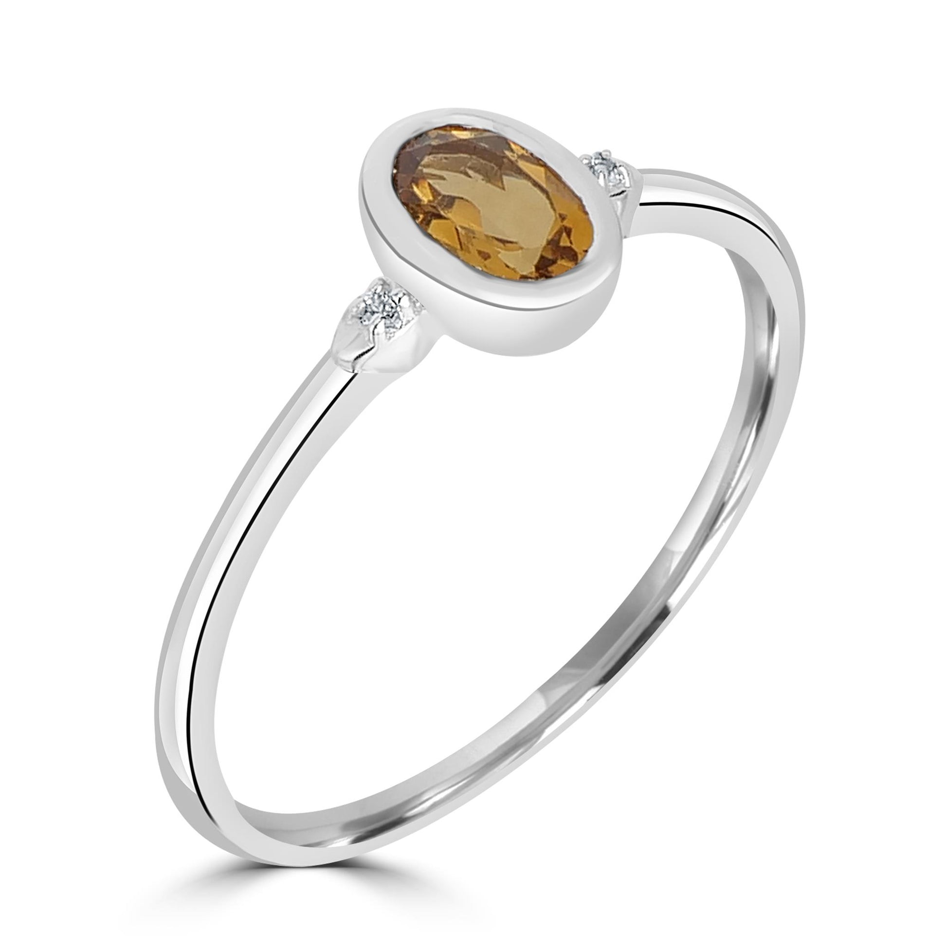 Introducing the Gemistry Stack Ring Collection : a versatile assortment of rings designed for effortless layering. Each piece combines timeless sophistication with modern flair, perfect for adding a touch of chic to any outfit. Mix, match, and stack to create your own unique style statement. The Kate Oval Cut Gemstone Ring is hand crafted from Sterling Silver. The bezel setting holds a genuine oval cut Citrine gemstone, with a round White Topaz stone on either side. It is perfect for those born in November or for anyone who loves jewelry. The Citrine birthstone symbolizes happiness, health, energy, and prosperity.
