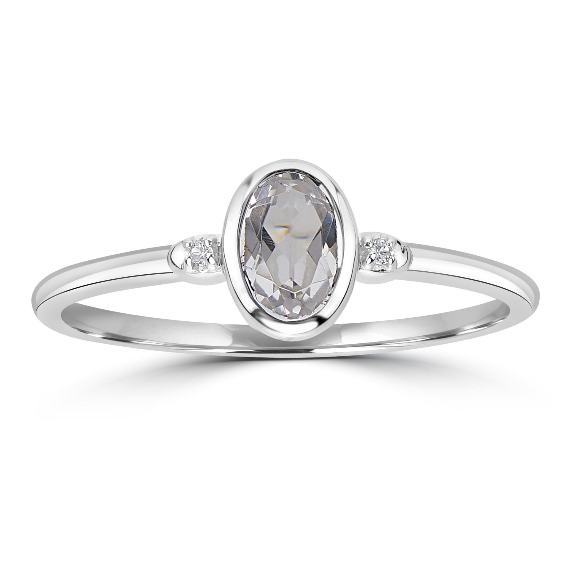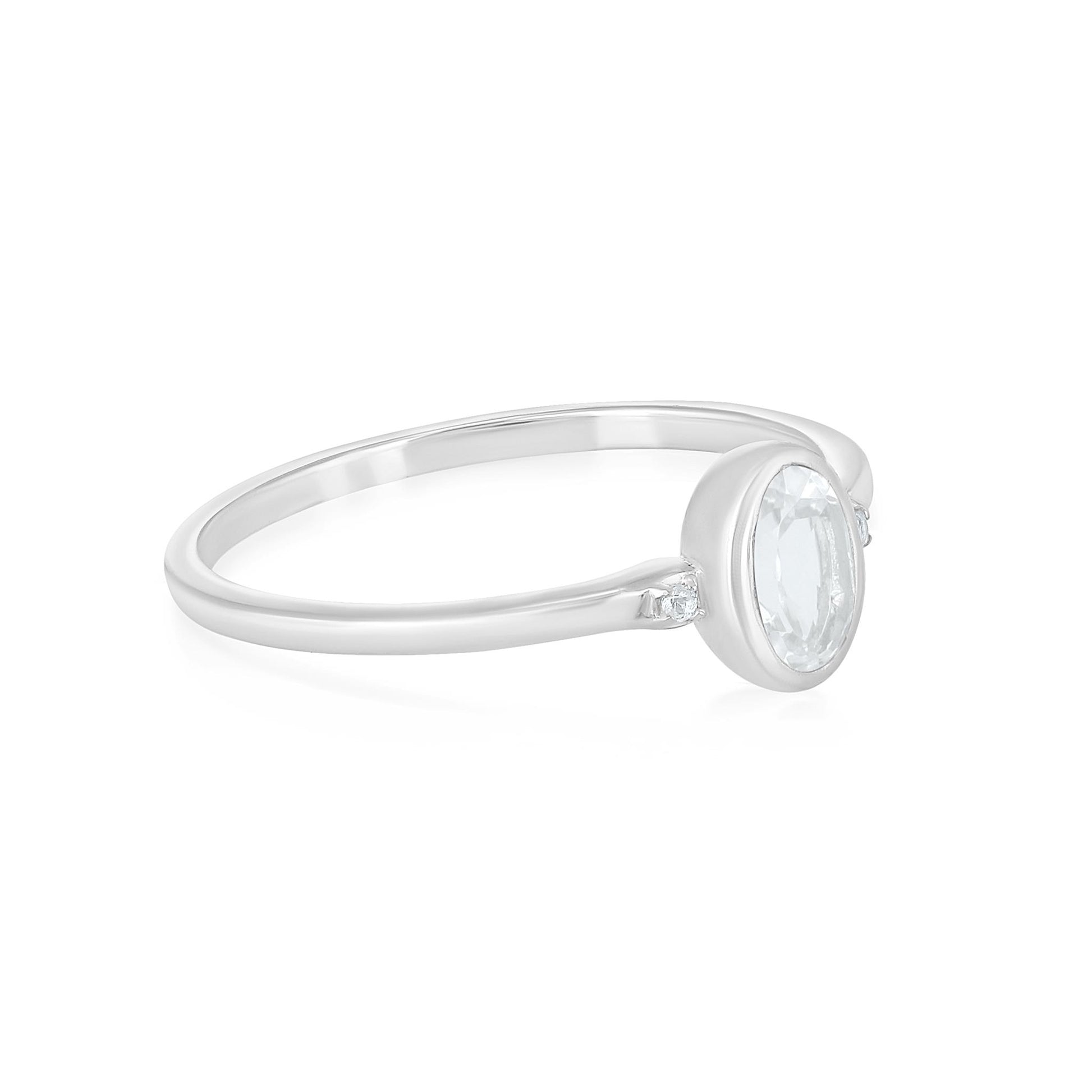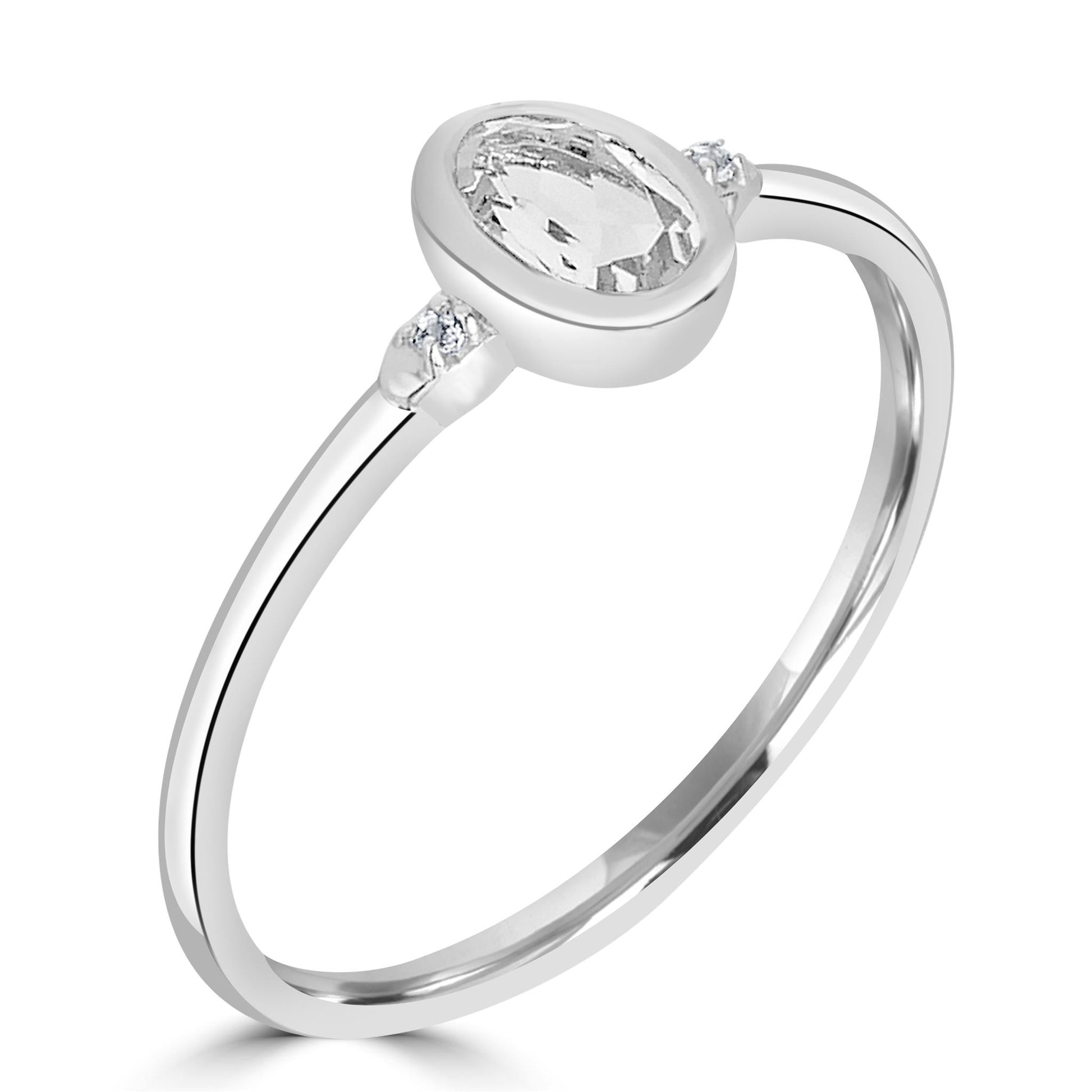 Introducing the Gemistry Stack Ring Collection : a versatile assortment of rings designed for effortless layering. Each piece combines timeless sophistication with modern flair, perfect for adding a touch of chic to any outfit. Mix, match, and stack to create your own unique style statement. The Kate Oval Cut Gemstone Ring is hand crafted from Sterling Silver. The bezel setting holds a genuine oval cut White Topaz gemstone, with a round White Topaz stone on either side. It is perfect for those born in April or for anyone who loves jewelry. The White Topaz birthstone symbolizes clarity and purity, bringing peace and serenity.