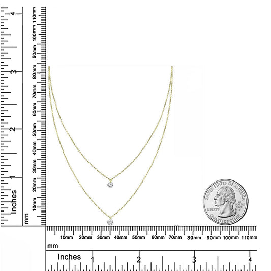 Gemistry Womens or Girls 18K Yellow Gold & Diamond Double Strand Circle Necklace April Birthstone Month, Jewelry Gift For Her (IJ color and SI clarity)