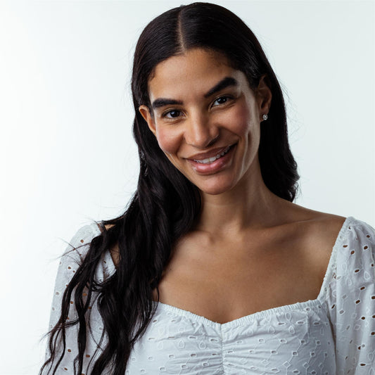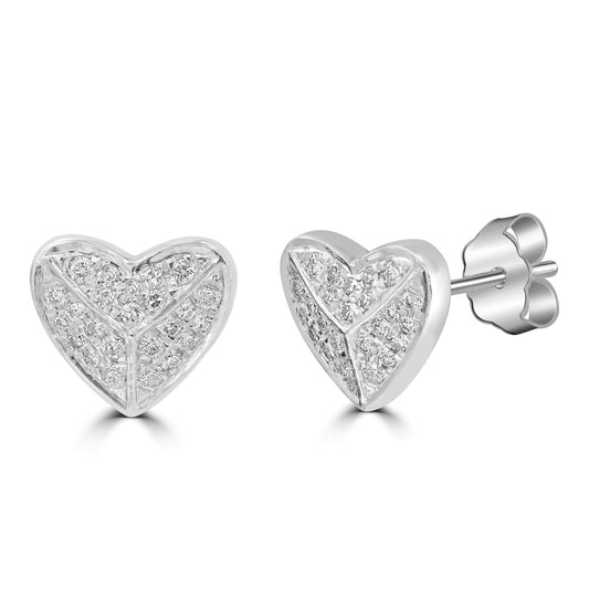 Gemistry Womens or Girls 14K White Gold, Round White Diamond Stud Earring. April Birthstone Month, Gift For Her.