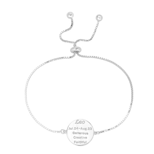 Sterling Silver Leo Zodiac Crystal Bracelet with Adjustable Chain, 5 to 9 Inches