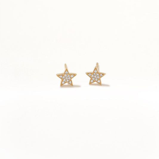 14K Gold 0.89 Carat Round Diamond Moon Stud Earrings