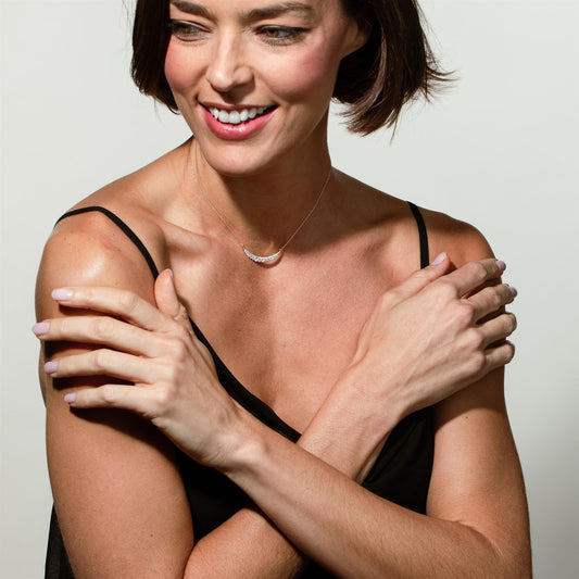 Gemistry 14K Yellow Gold 0.71 Ct Round Diamond Curved Bar Pendant Necklace(GH Color, I1 Clarity)