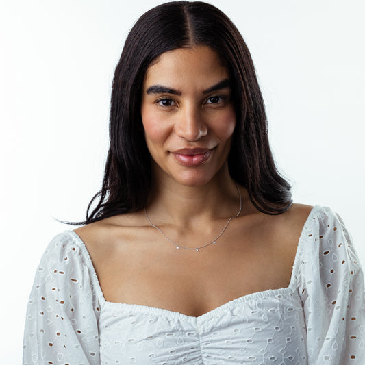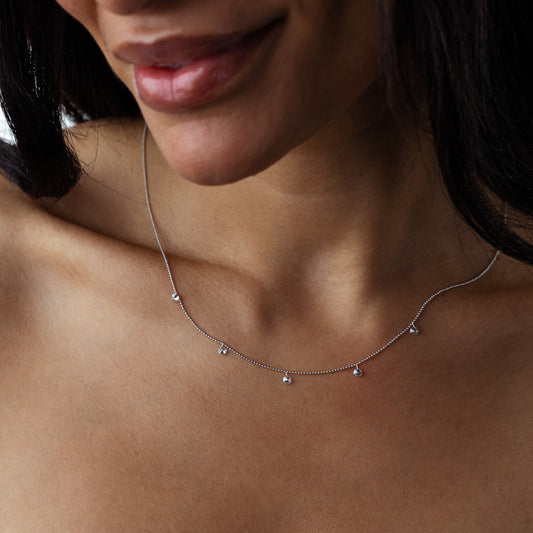 18K White Gold 5 Diamond Beaded Necklace, 18 Inches