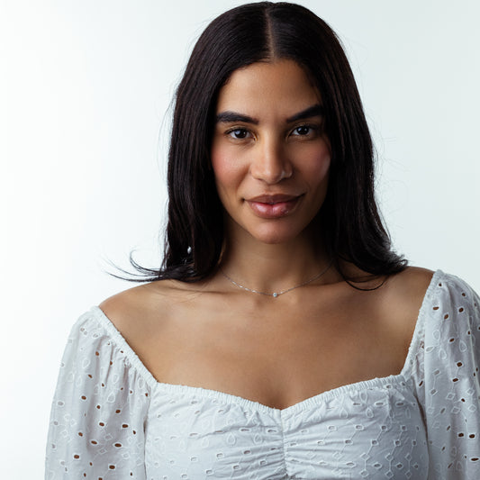18K White Gold Single Diamond Chain Necklace, 18 Inches