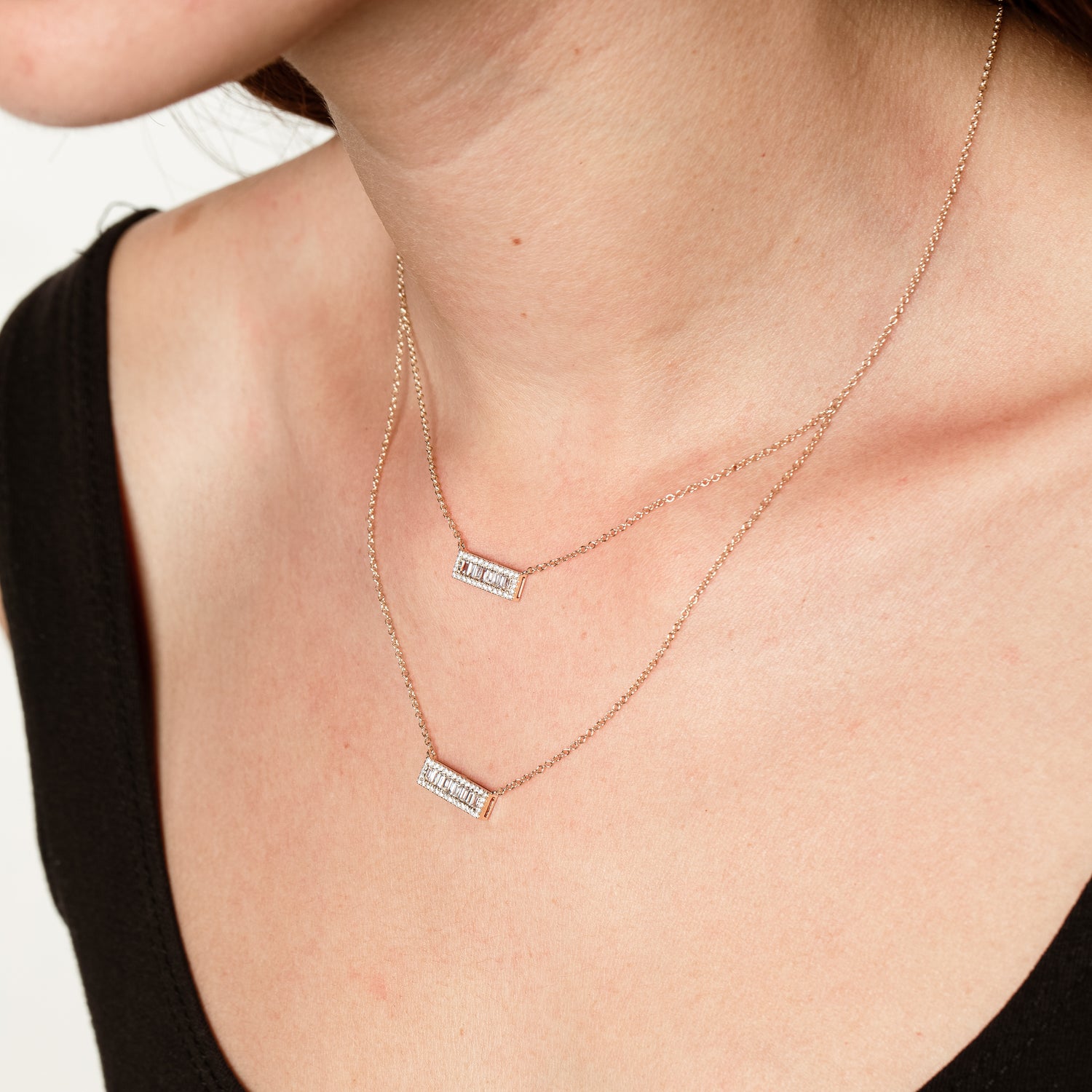 Gemistry Women 14K Yellow Gold 0.42Ct Baguette and Round Diamond Layered Necklace (GH Color, VS1 Clarity), 15 inch