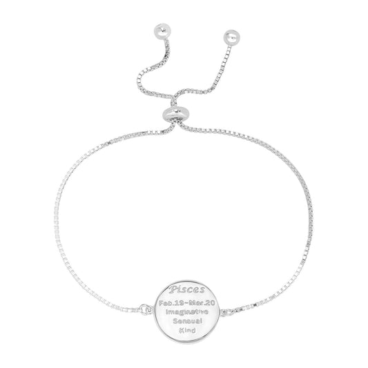Sterling Silver Pisces Zodiac Crystal Bracelet with Adjustable Chain, 5 to 9 Inches