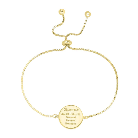 14K Gold Over Sterling Silver Taurus Zodiac Crystal Bracelet with Adjustable Chain, 5 to 9 Inches