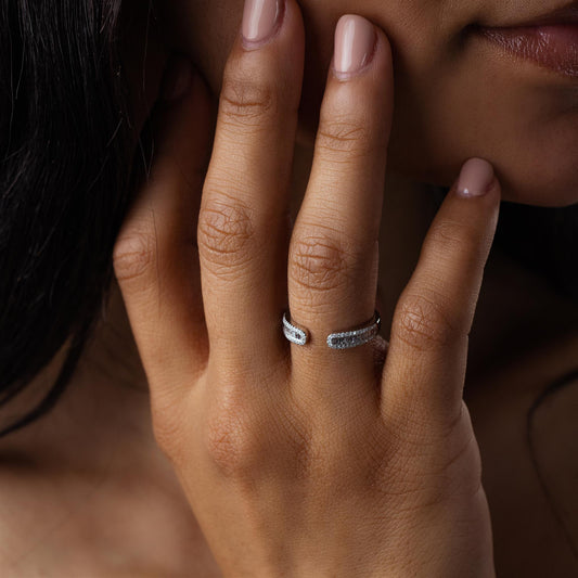 14K White Gold Round and Baguette Diamond Cuff Ring, .30 Carats, Sizes 6 to 8
