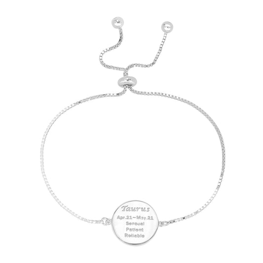 Sterling Silver Taurus Zodiac Crystal Bracelet with Adjustable Chain, 5 to 9 Inches