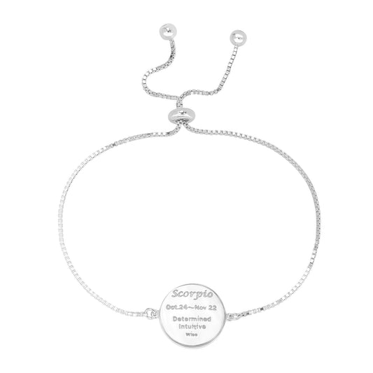Sterling Silver Scorpio Zodiac Crystal Bracelet with Adjustable Chain, 5 to 9 Inches